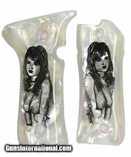 Description: LLAMA SMALL FRAME, III & IIIA .380 & 9mm WITH LASER ENGRAVED NAKED LADY 1 Pair Left CLASSIC PEARL PREMIUM REPRODUCTION GRIPS Pearl Premium Grips Are Made of an Engineered Urethane That is More Durable Than Other Faux Pearl Grips. Will not chip or shrink! Shipping in U.S.: $7.00. International Shipping: $20.00, Countries Limited. Please email for questions or payment options. SOLD |