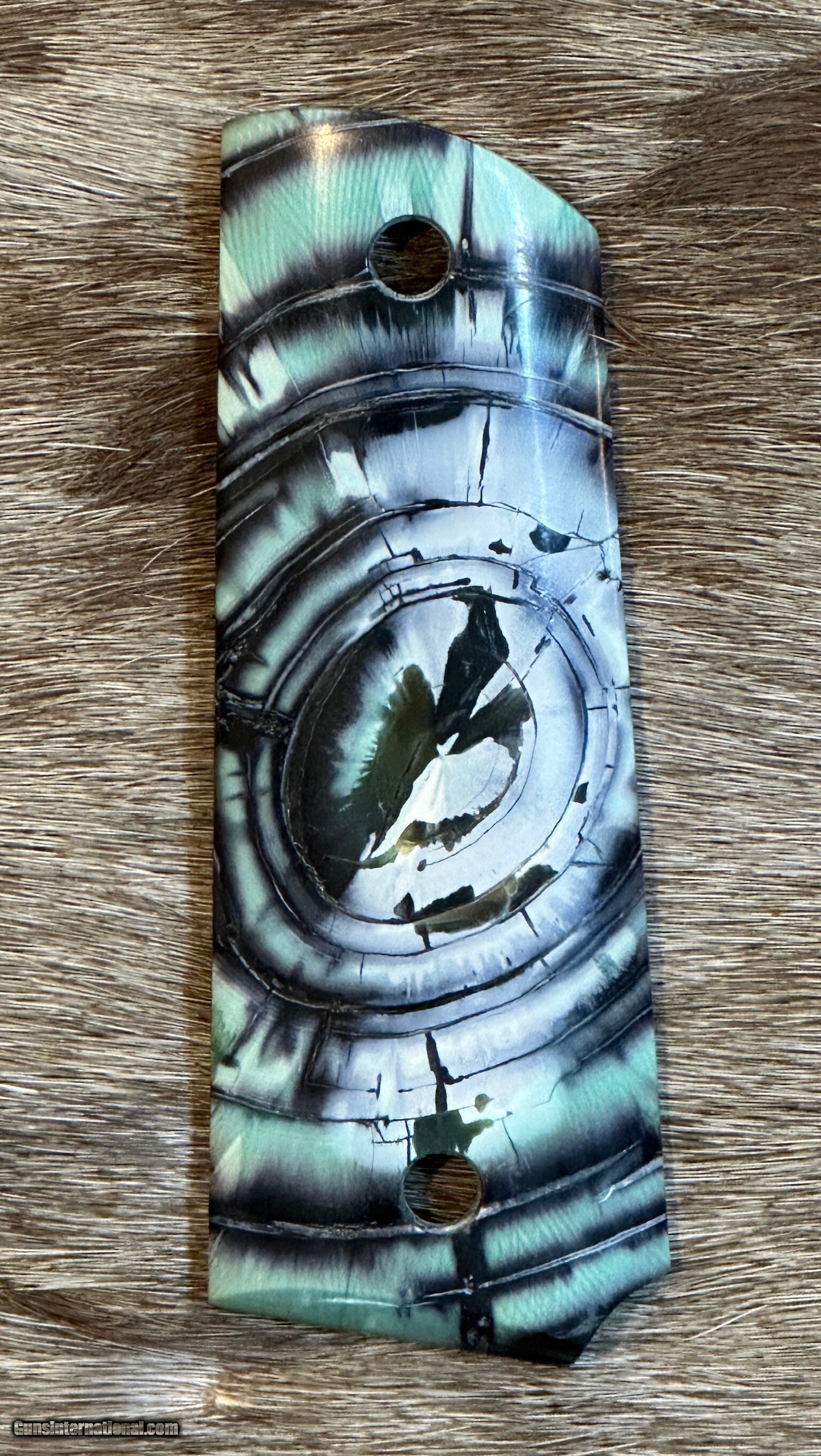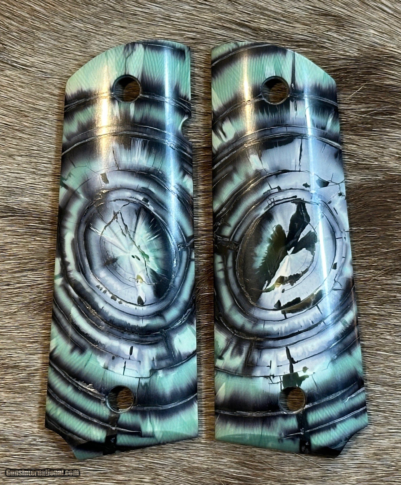 Description: NEW NIGHTHAWK CUSTOM CROSS-CUT MAMMOTH IVORY 1911 GOVERNMENT AND/OR COMMANDER GRIPS Set your 1911 apart with these beautiful mammoth tusk ivory 1911 grips. Each set of grips has been crosscut from fossilized mammoth tusk, creating unique patterns and breathtaking colors. Note: The grips shown in the pictures are the actual grips you are buying. SPECIFICATIONS
