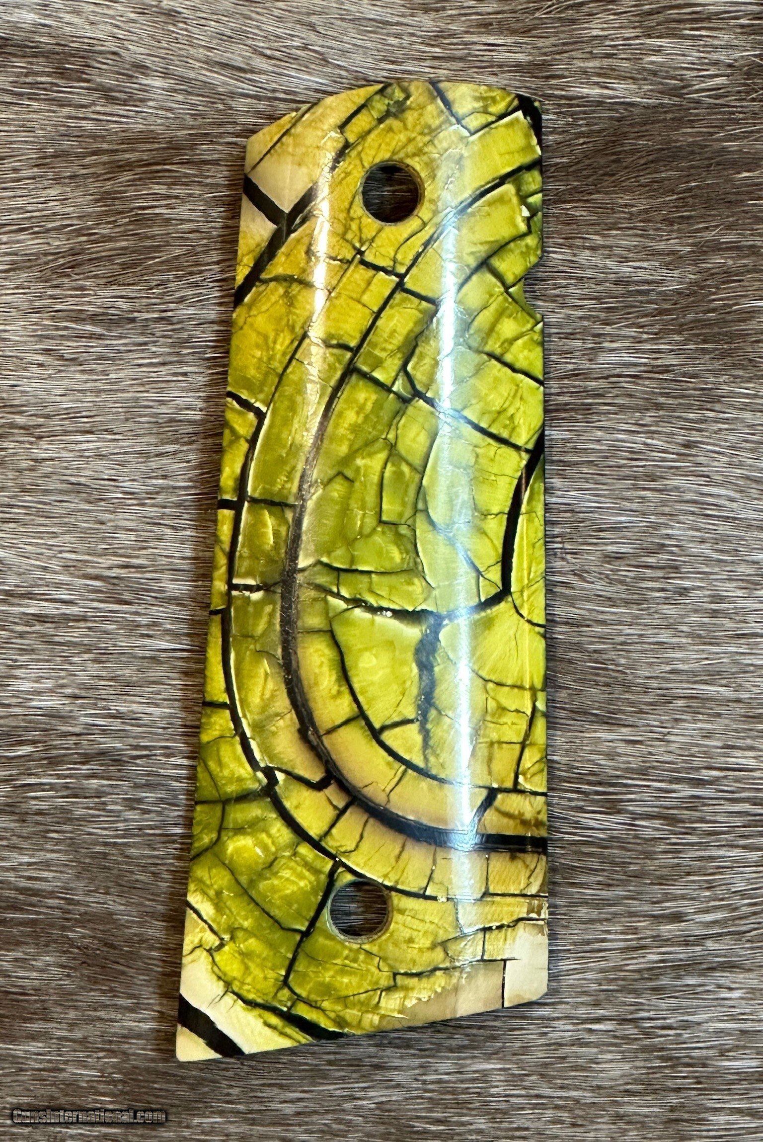 Description: NEW NIGHTHAWK CUSTOM CROSS-CUT MAMMOTH IVORY 1911 GOVERNMENT AND/OR COMMANDER GRIPS Set your 1911 apart with these beautiful mammoth tusk ivory 1911 grips. Each set of grips has been crosscut from fossilized mammoth tusk, creating unique patterns and breathtaking colors. Note: The grips shown in the pictures are the actual grips you are buying. SPECIFICATIONS