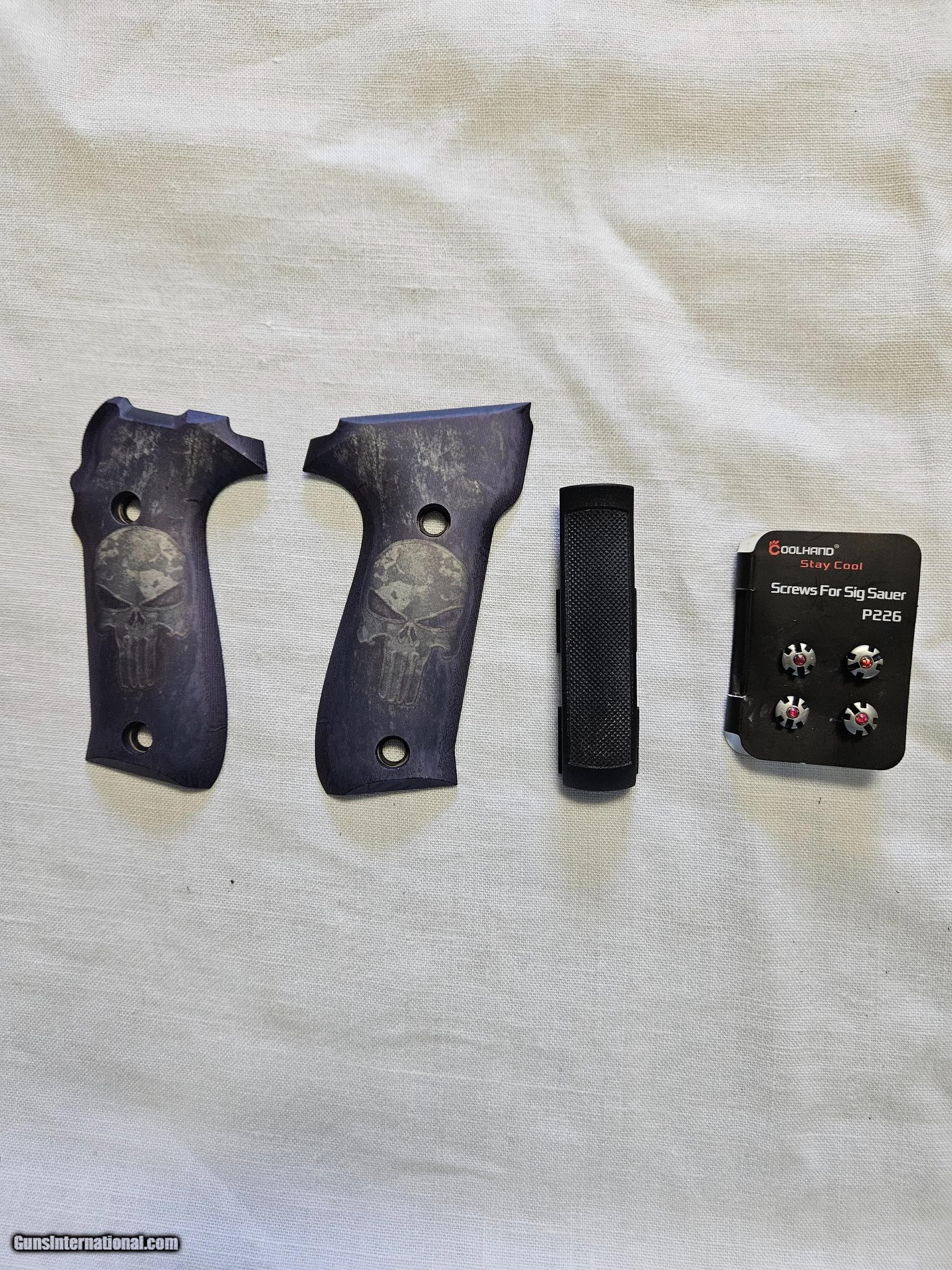 Description: These "punisher" pistol grips and screws fit a Sig Saur 226. Like new condition in box. you pay shipping SOLD |