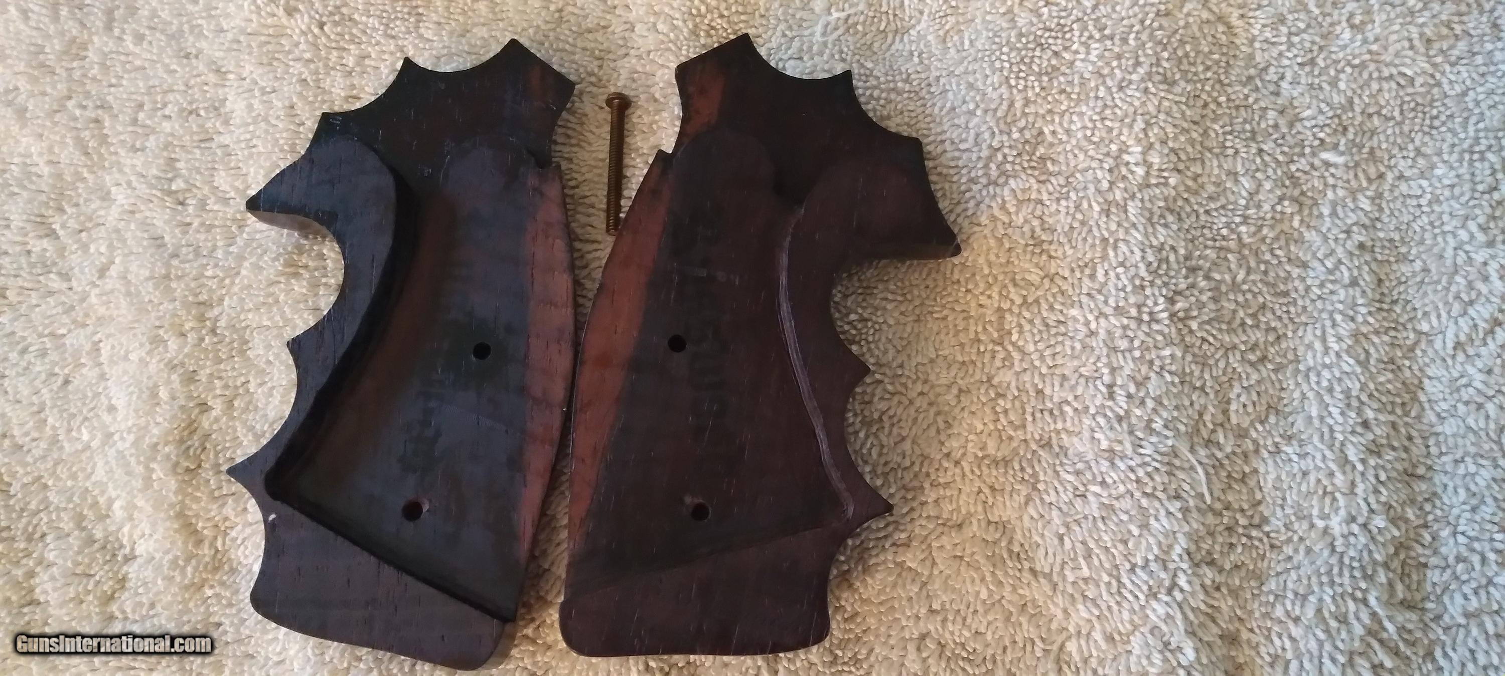 Description: VINTAGE RUSSWOOD COMBAT GRIPS SQUARE BUTT N-FRAME FINGER GROOVE GRIPS UNKNOWN WOOD COMPOSITION SHIPPING $10.00 DIRECT TO YOU. SOLD |