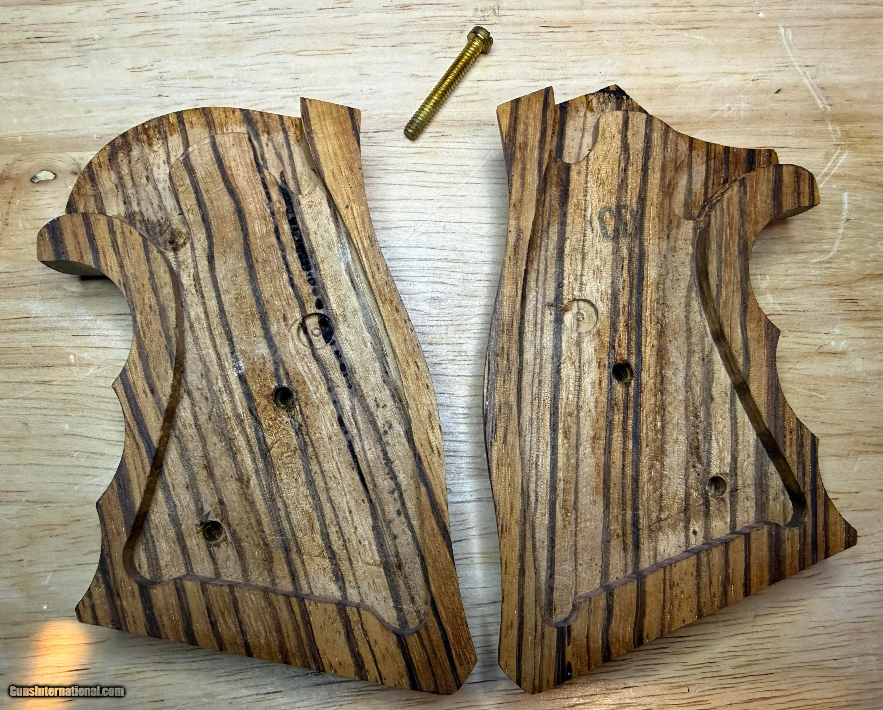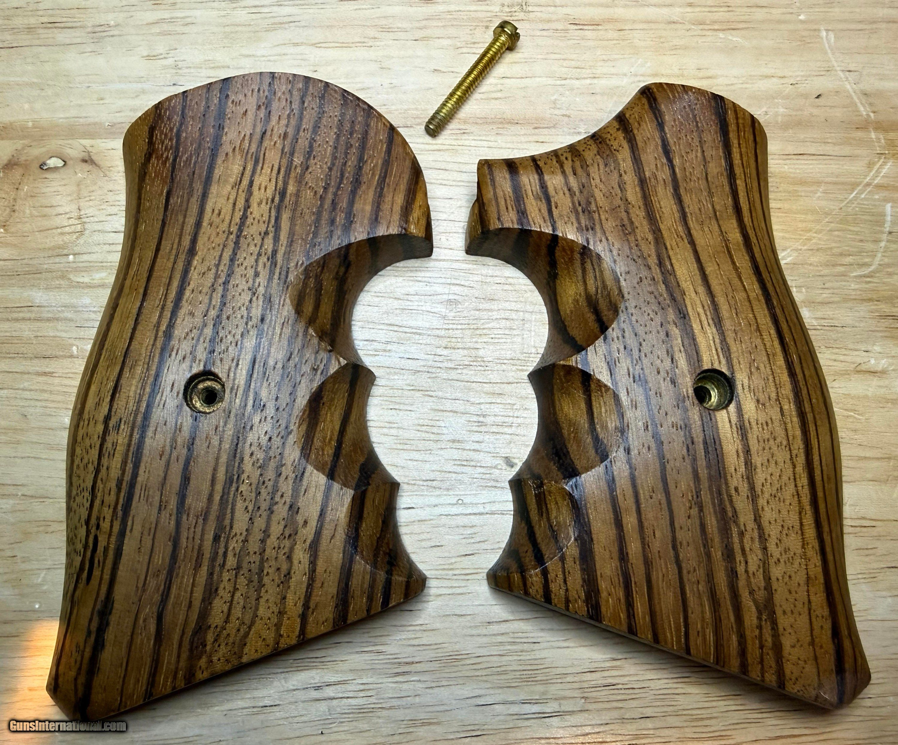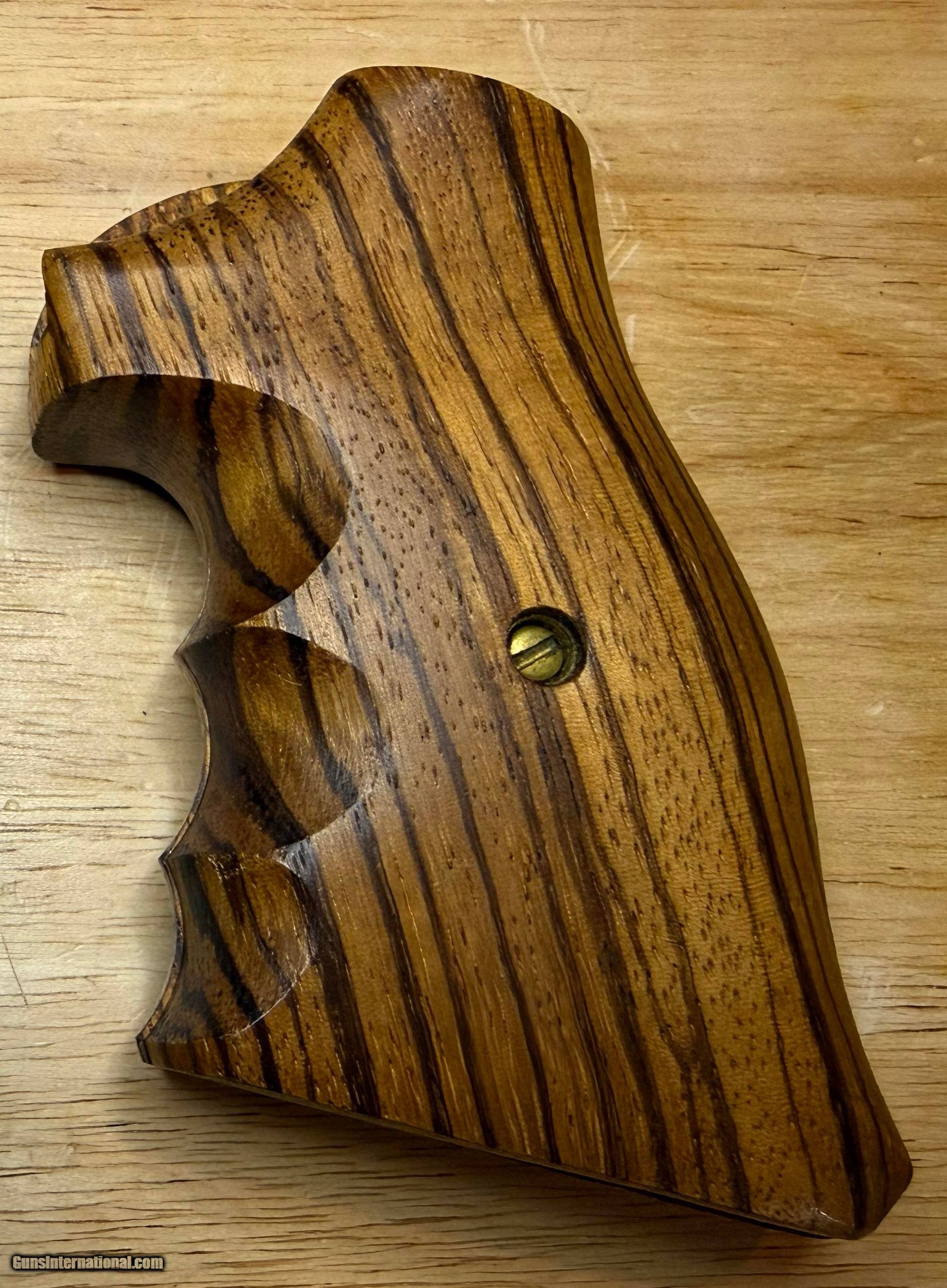 Description: This listing is for a pair of aftermarket grips for a Colt Python. The wood is beautifully figured and the grips are smooth, with finger grooves. Brass screw is included. Price: $185.00 Shipping: $10.95 Pay with