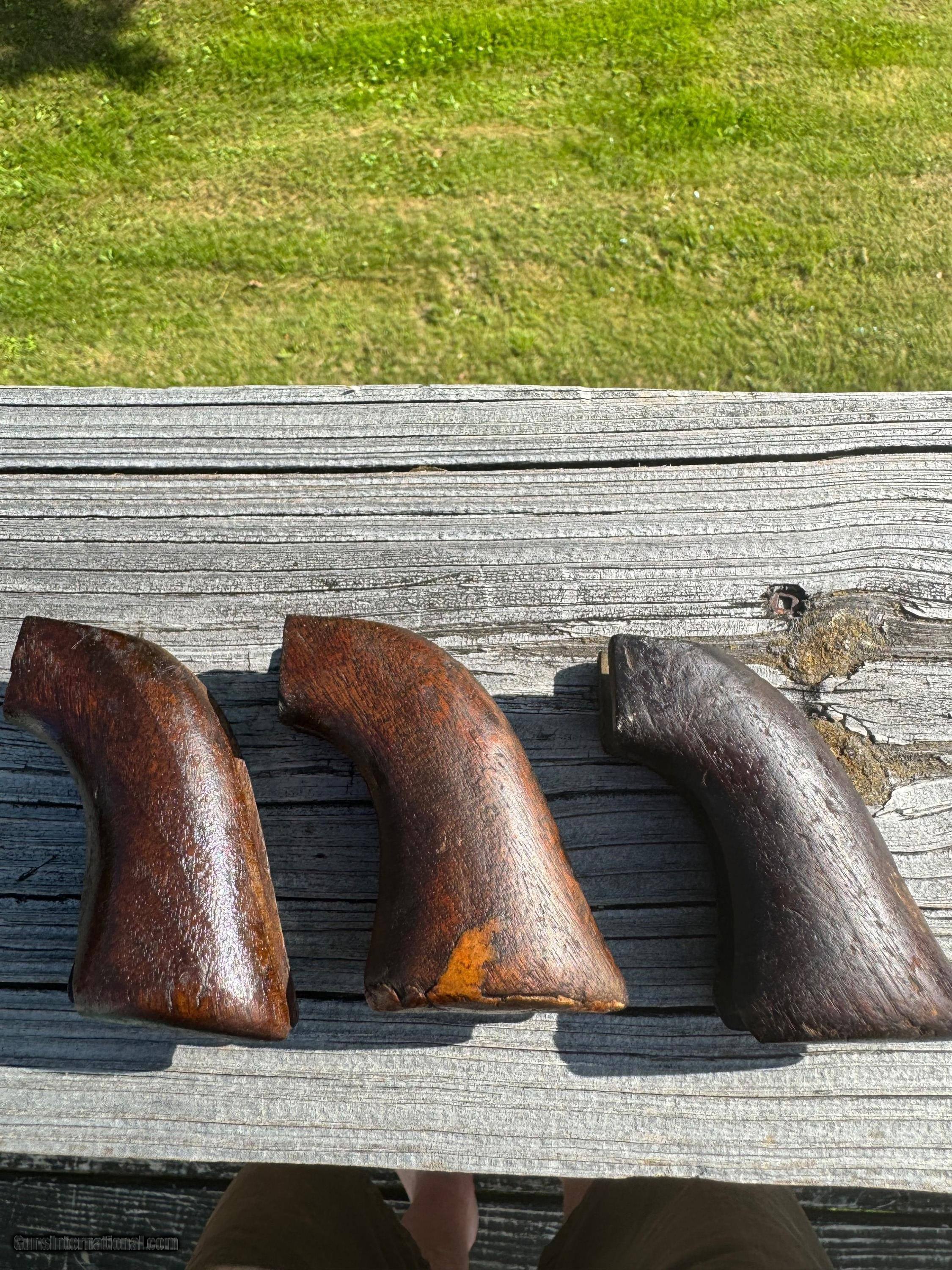 Description: Three pairs of original one piece grips for Colt 1851 Navy or SAA. Condition shown in pics SOLD |