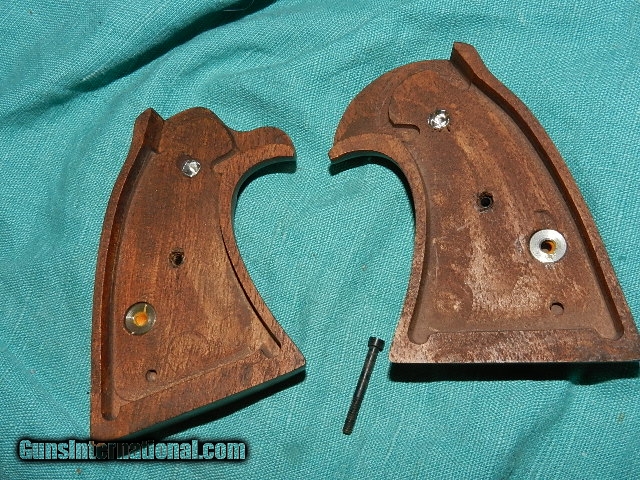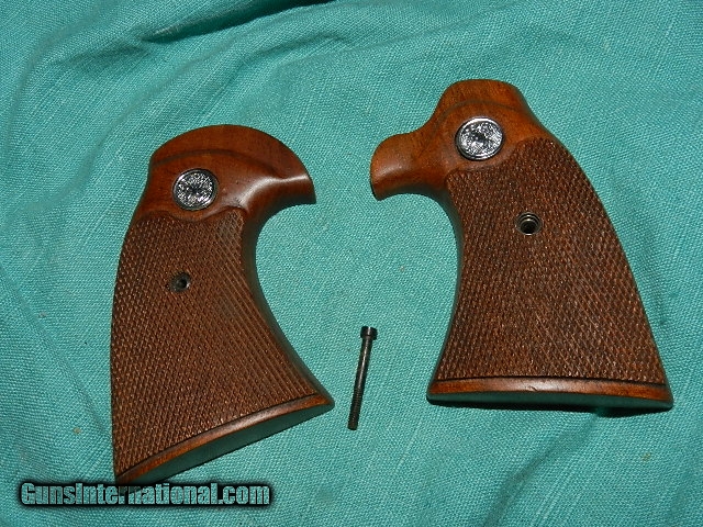 Description: This is a pair of Colt factory model D grips used on the Diamondback and other models. They are checkered American walnut with factory medallions, these are not recent oriental made copies and have never been on a gun. Comes with a factory blued screw. They are mint. See clowns on EBAY try to sell these for almost $300! I have many Colt factory items as I live 12 miles from the Colt blue dome! We don’t have asite .I prefer money orders or a check. Item ships when funds come in. If you can only pay with a card let me know. I hope you like my wide selection of unusual guns, knives and gun parts. Shipping price determined by zip code. I try to keep the prices affordable, which means I make less money than most dealers. You won’t get altitude sickness with my prices! I consistently have the best selection of older guns If you BUY IT NOW you must still contact us for details buy it now doesn't end the sale, it just sends an email telling us you want to buy this gun. A phone call won’t secure a sale! Not home many times, the first buyer by email buys the gun !Thissite doesnot close down a sale when you do a BUY IT NOW like Ebay!I can get six buy it nows in an hour, first buyer to email gets the guns, others are in second place! Best to send another email . Sometimes not home to get calls. Some guns are required shipment to a gun dealer near you for a transfer to you when it arrives. With the widest selection of older guns at great prices, We don’t have a store, and sell on the internet only. SOLD |