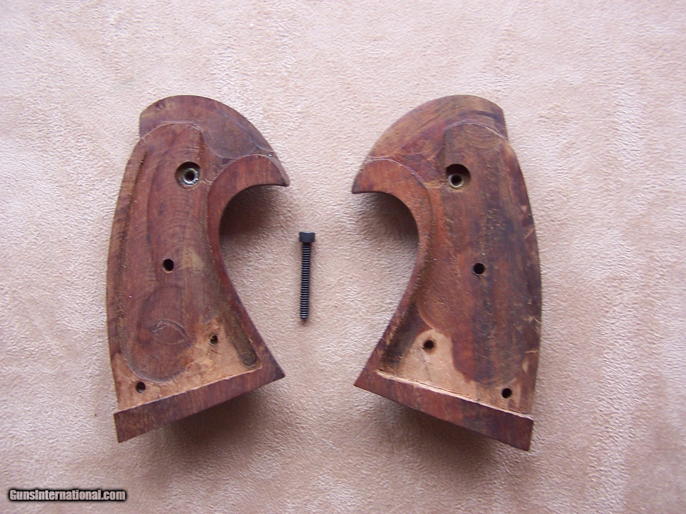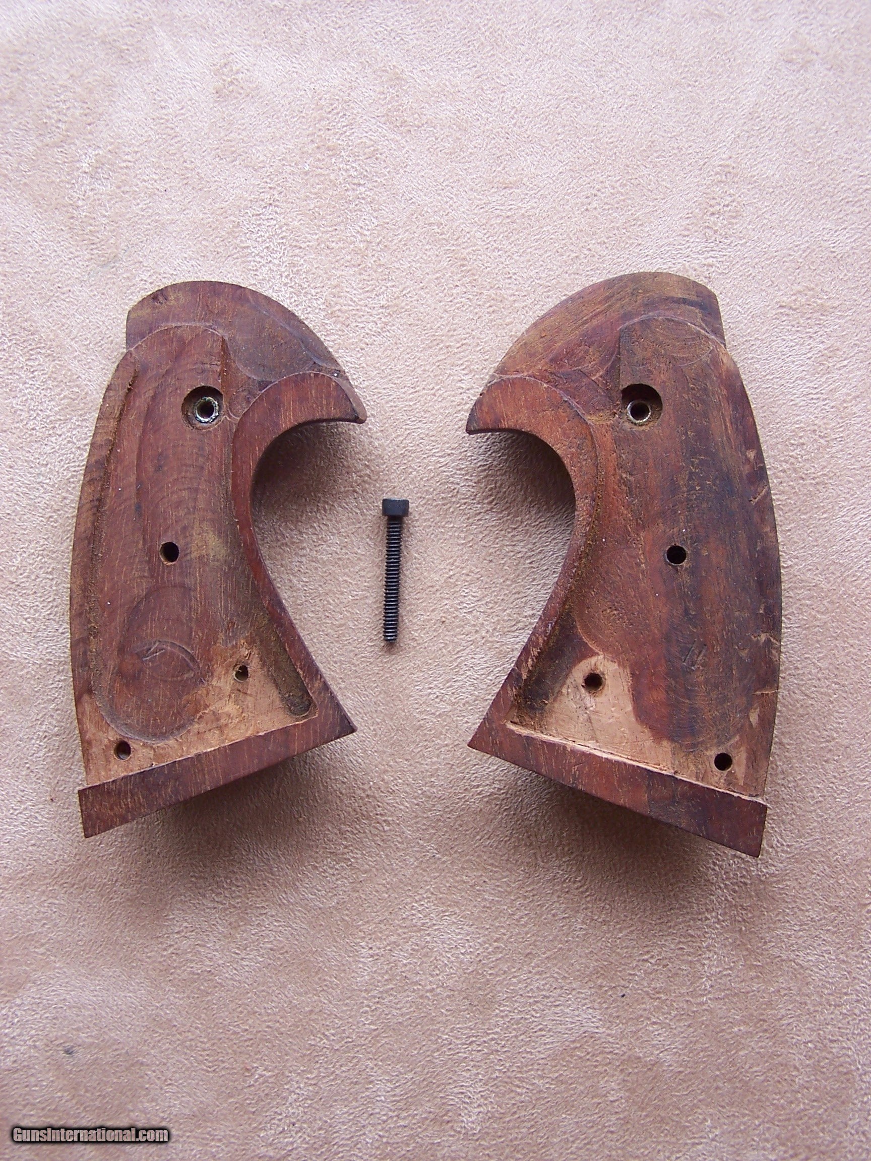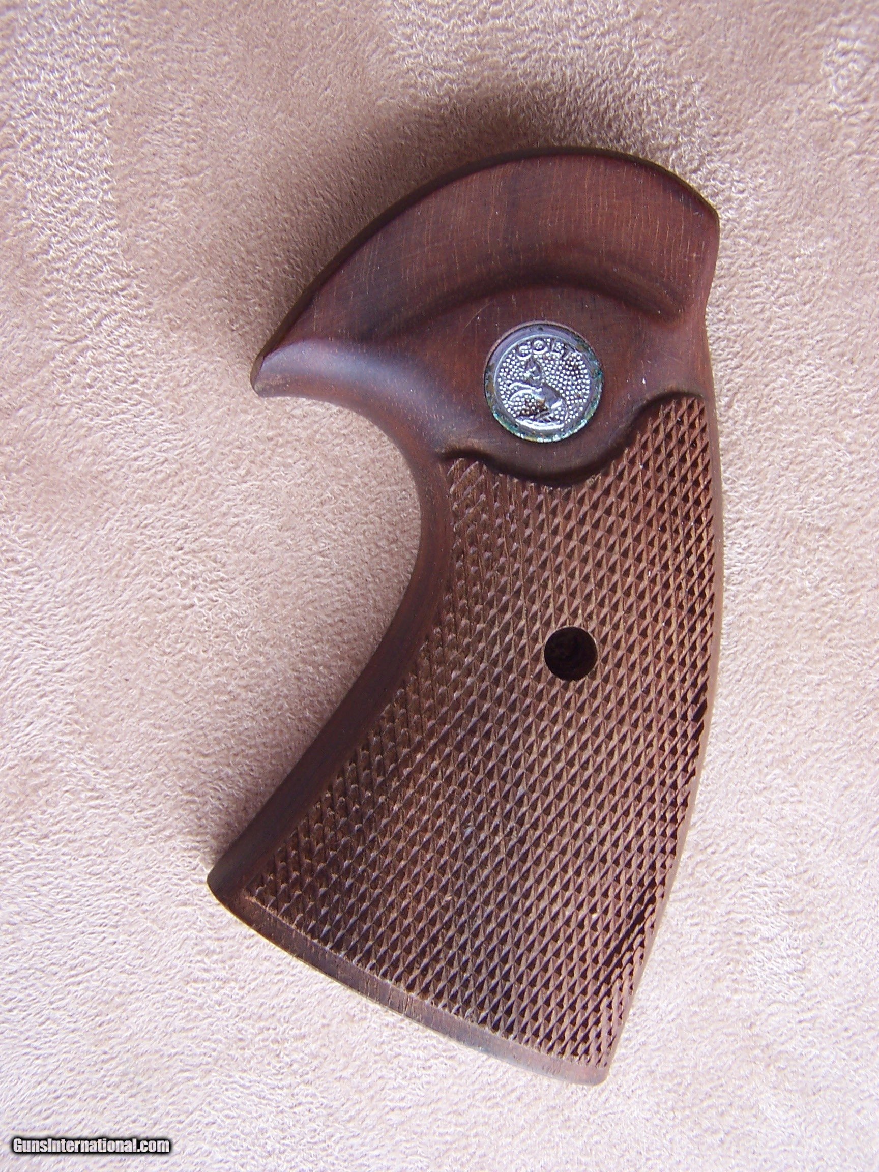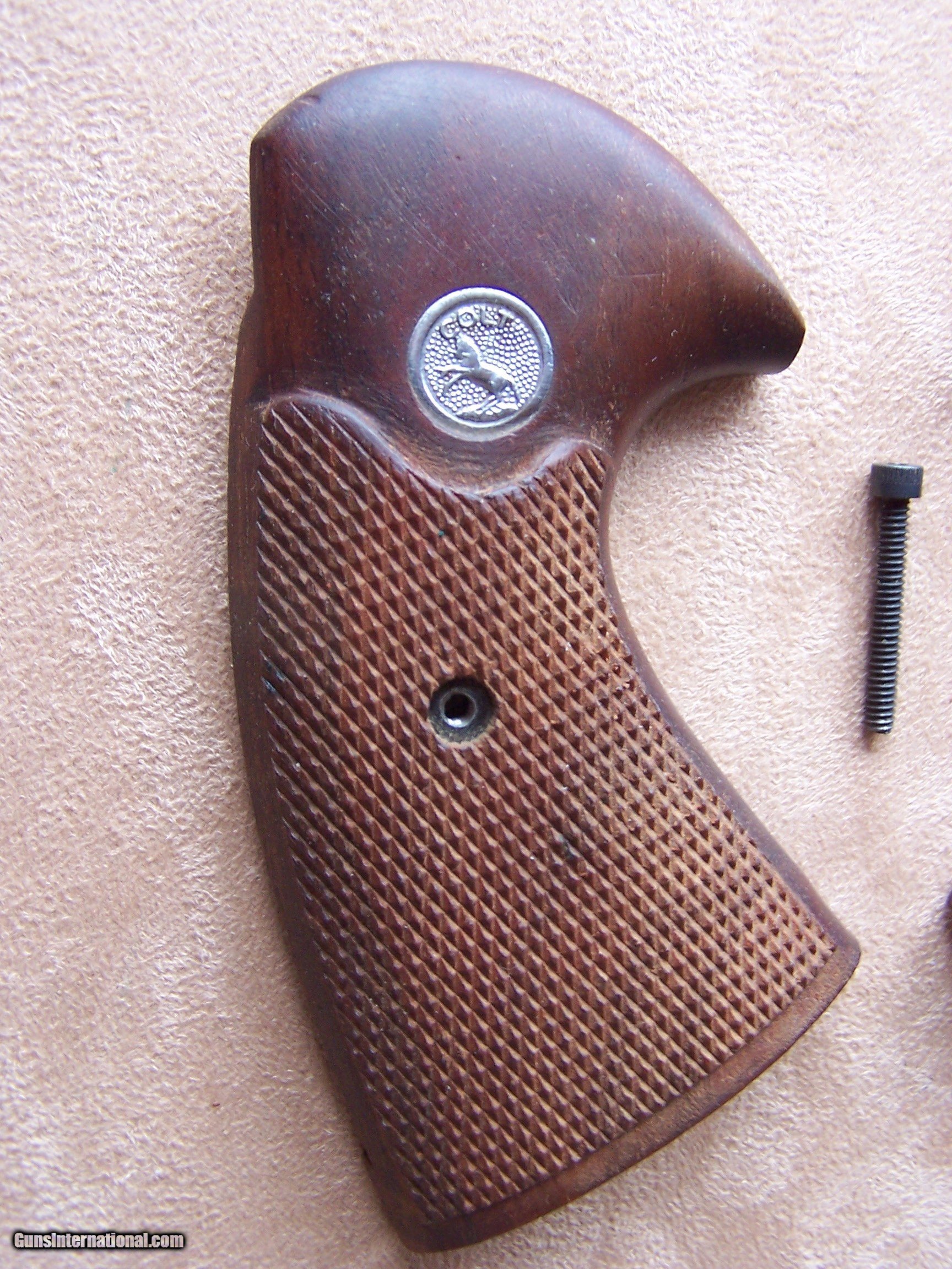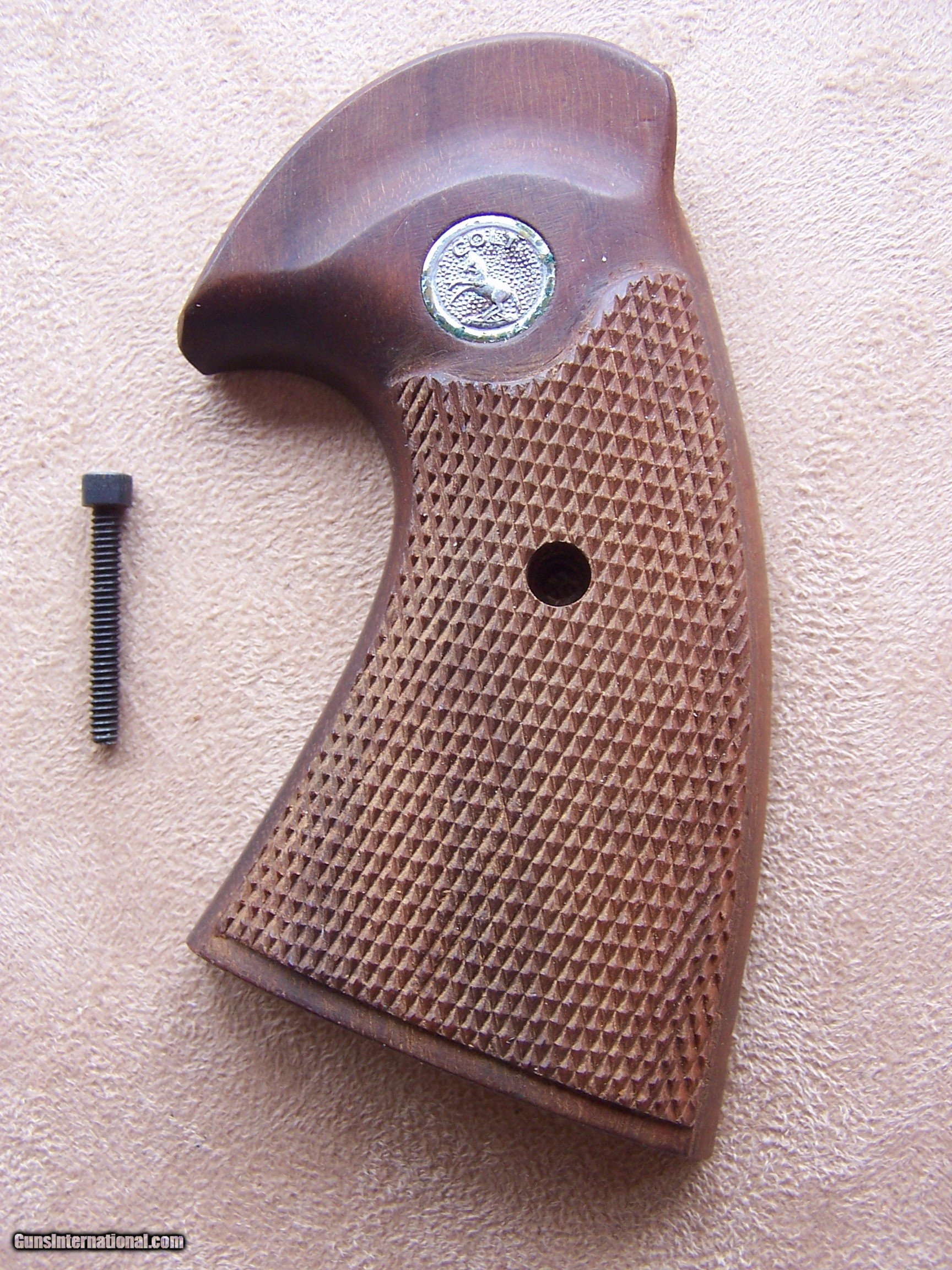 Description: An excellent set of grips for the Colt Python, Officers Model Special, Officers Model Match, or Model 3 5 7. These will fit any I or E frame Colt revolver. No chips or cracks. Includes the screw. Price: $175.00 Shipped SOLD |