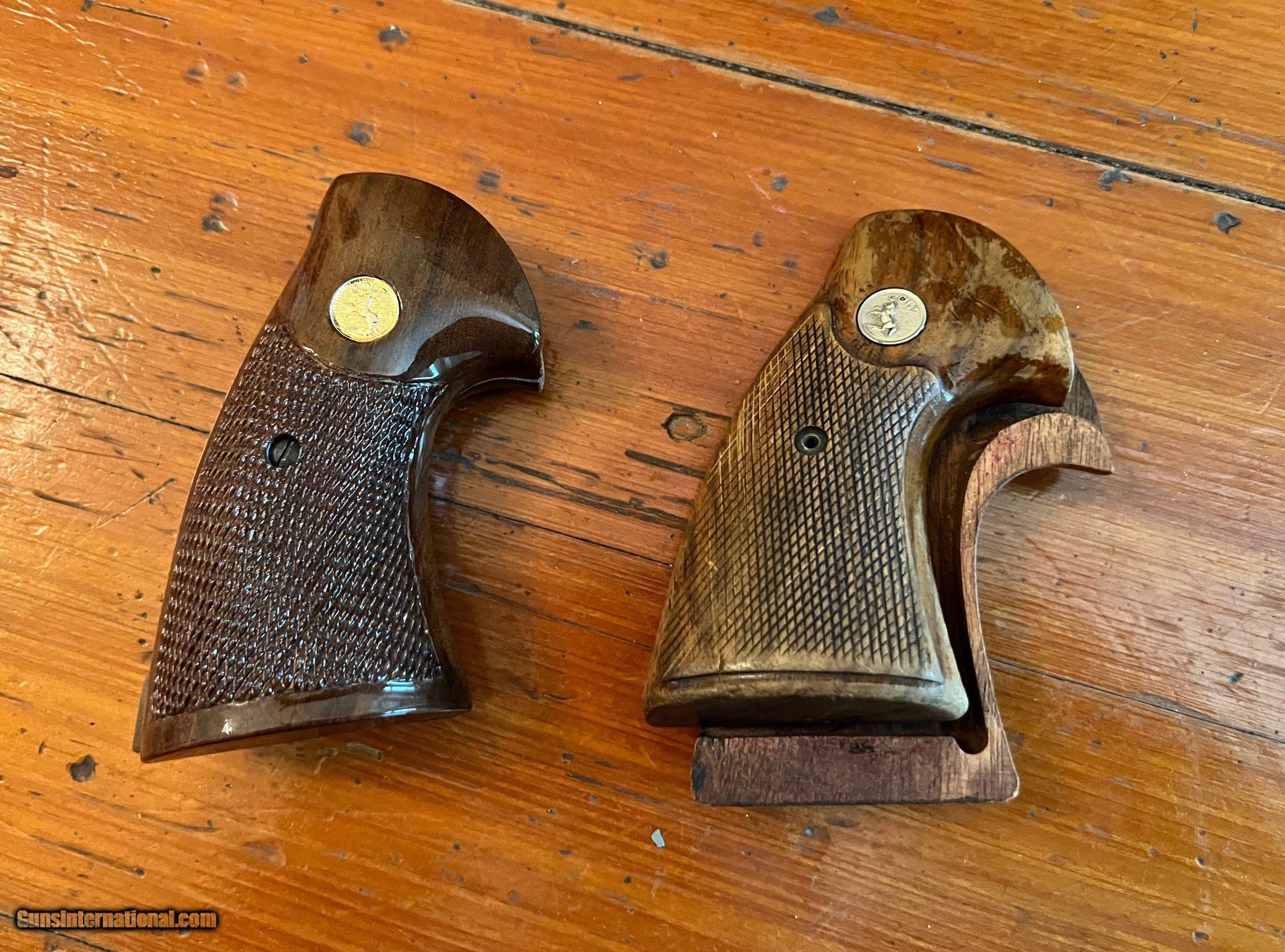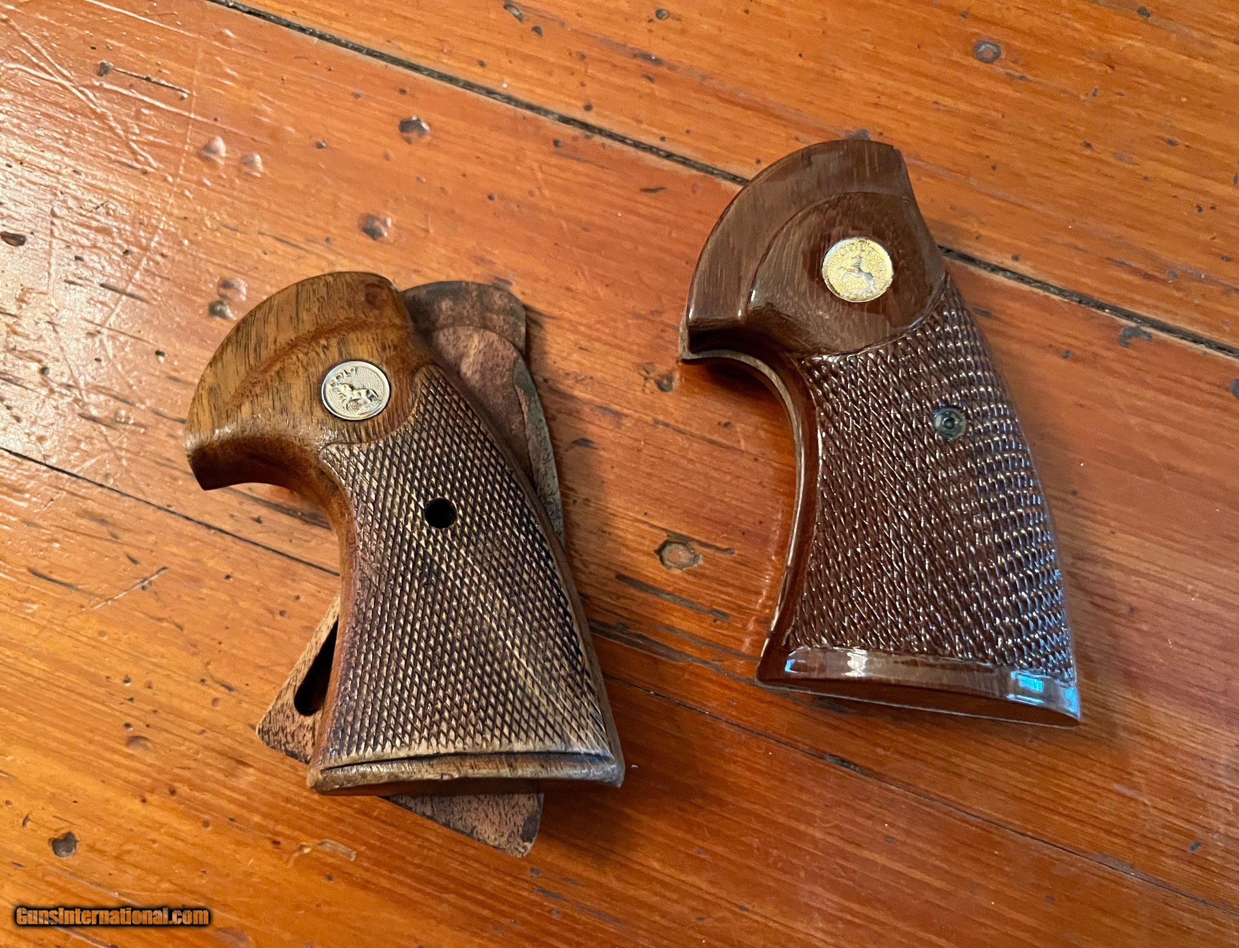 Description: Colt python second gen grips One set is original (worn finish) second set is reproduction grips SOLD |