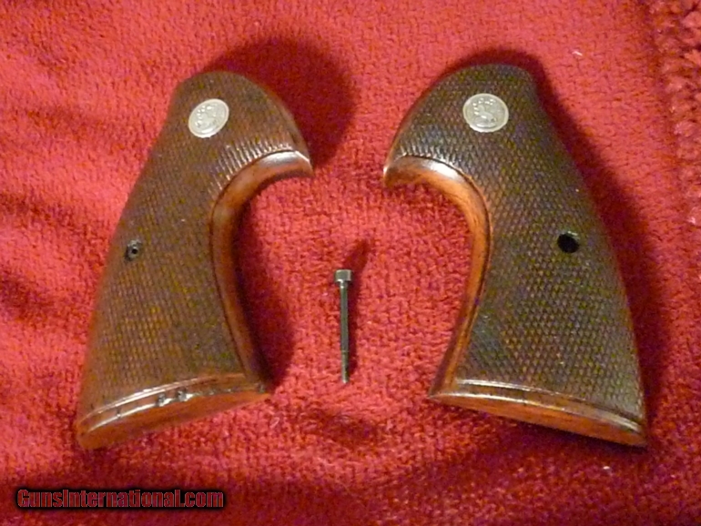 Description: Colt Python Vintage grips! These grips are off a very early Colt Python, with the full checkering on the whole grip! They are NOT the REPRODUCTION grips that are made in CHINA, and also come with the original Colt grip screw! They are in very good condition, and also VERY hard to find! Buyer to pay 7.00 shipping to the lower 48 states, and I am willing to ship International as well! Call Steve 605-212-7213 SOLD |