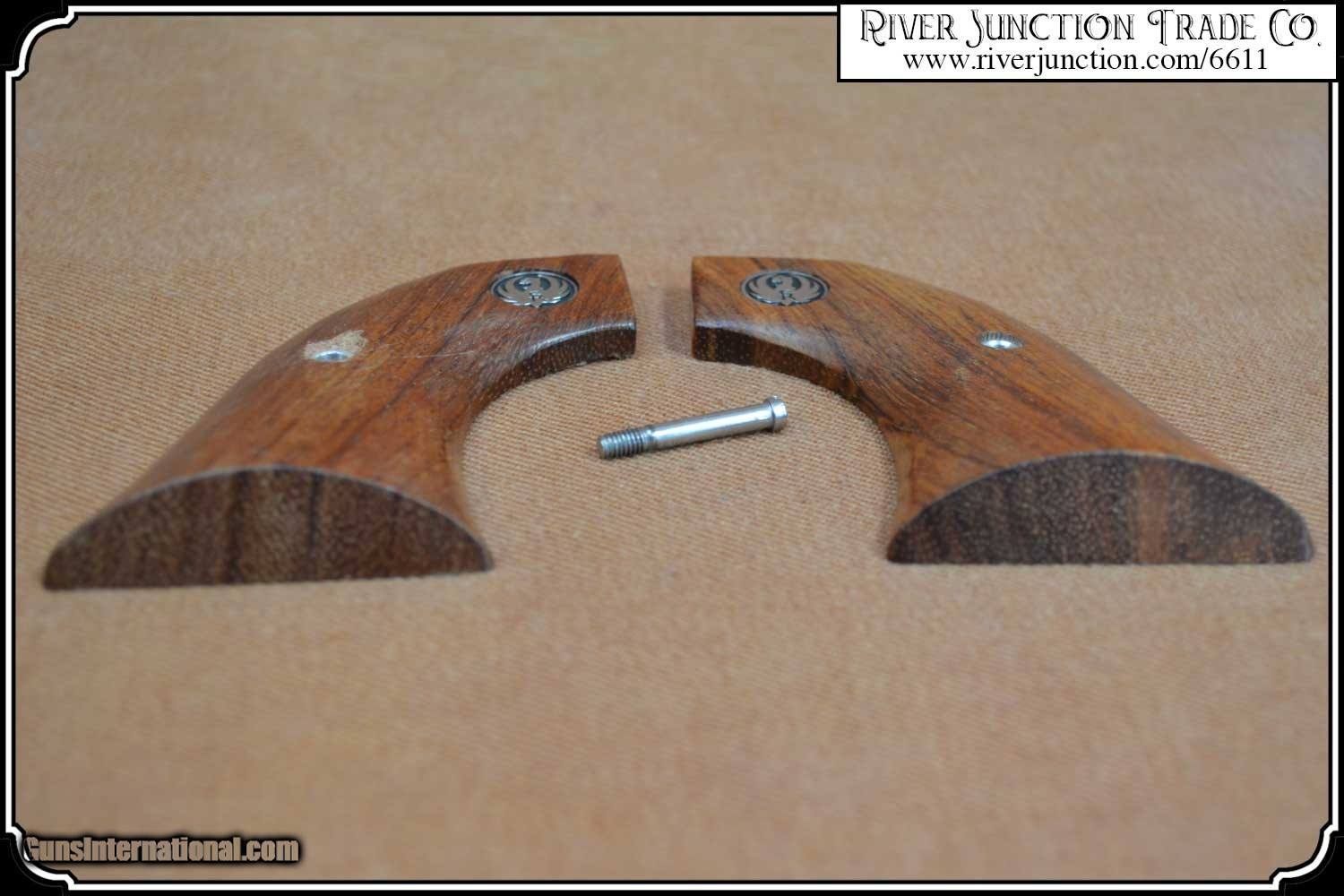 Description: Fits: Ruger Gun models: Wrangler, Old Blackhawk, New Blackhawk, Old Army, Old Vaquero, New Single Six Model# RU43-GFRO-NACH-BRFrame size: XR3-Red, XRN-3Red, XRN-3 They are beautifully finished Smooth Walnut with Ruger Medallion grips that look and feel just like hand made custom grips, with all the strong grain and character of mother natures material. They come with the escutcheons and screws installed. EAGLE GRIPS sells these for $149.95. Payment: Item, can be ordered on line with a credit card or paypal on our sight. Just Google (riverjunction) and type in the River Junction Trade Co. item number (6611) in the search box. Before you checkout you will see shipping cost and total. OR If you prefer: Pay by cash, postal money order, cashiers check, personal & business checks. We wait for checks to clear. We always answer questions and entertain offers. Have questions? Call me 563-880-4588. Jim SOLD |
