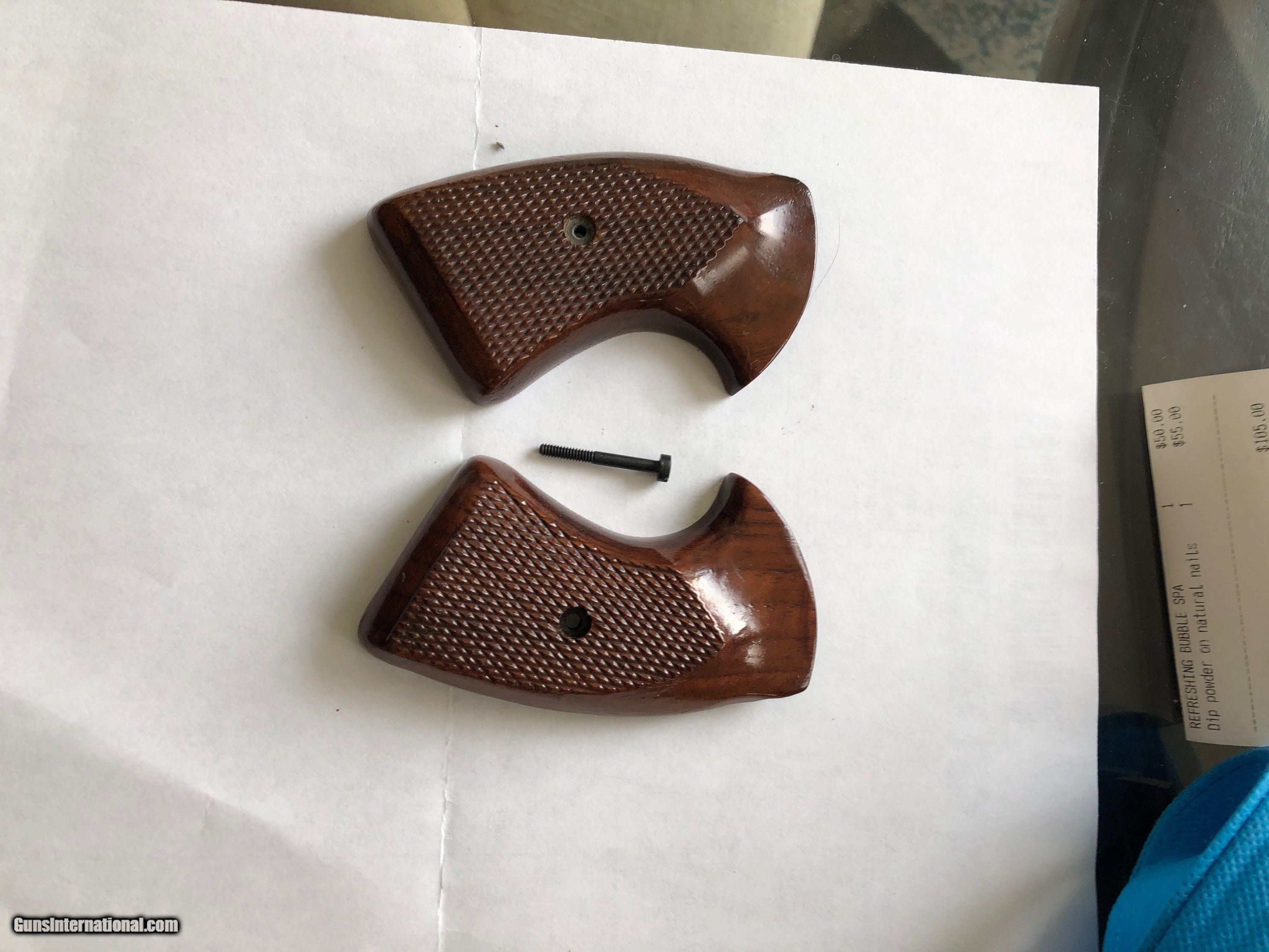 Original Walnut Checkered Grips short frame Colt Detective Special - Cobra Agent - .38 Spl