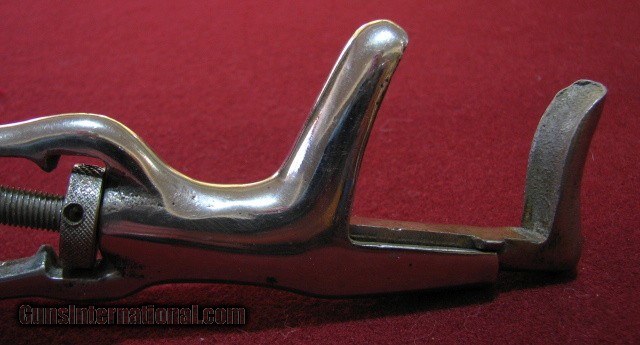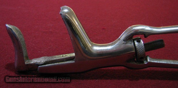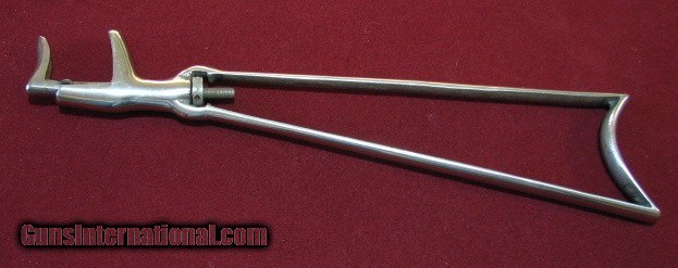 Description: Vintage skeleton pistol stock. Unmarked and not sure exactly what it was made for. 14 3/4" overall length. Buttstock is 3 1/2" wide. Nickel plated steel. Pretty neat and probably fairly universal. SOLD |