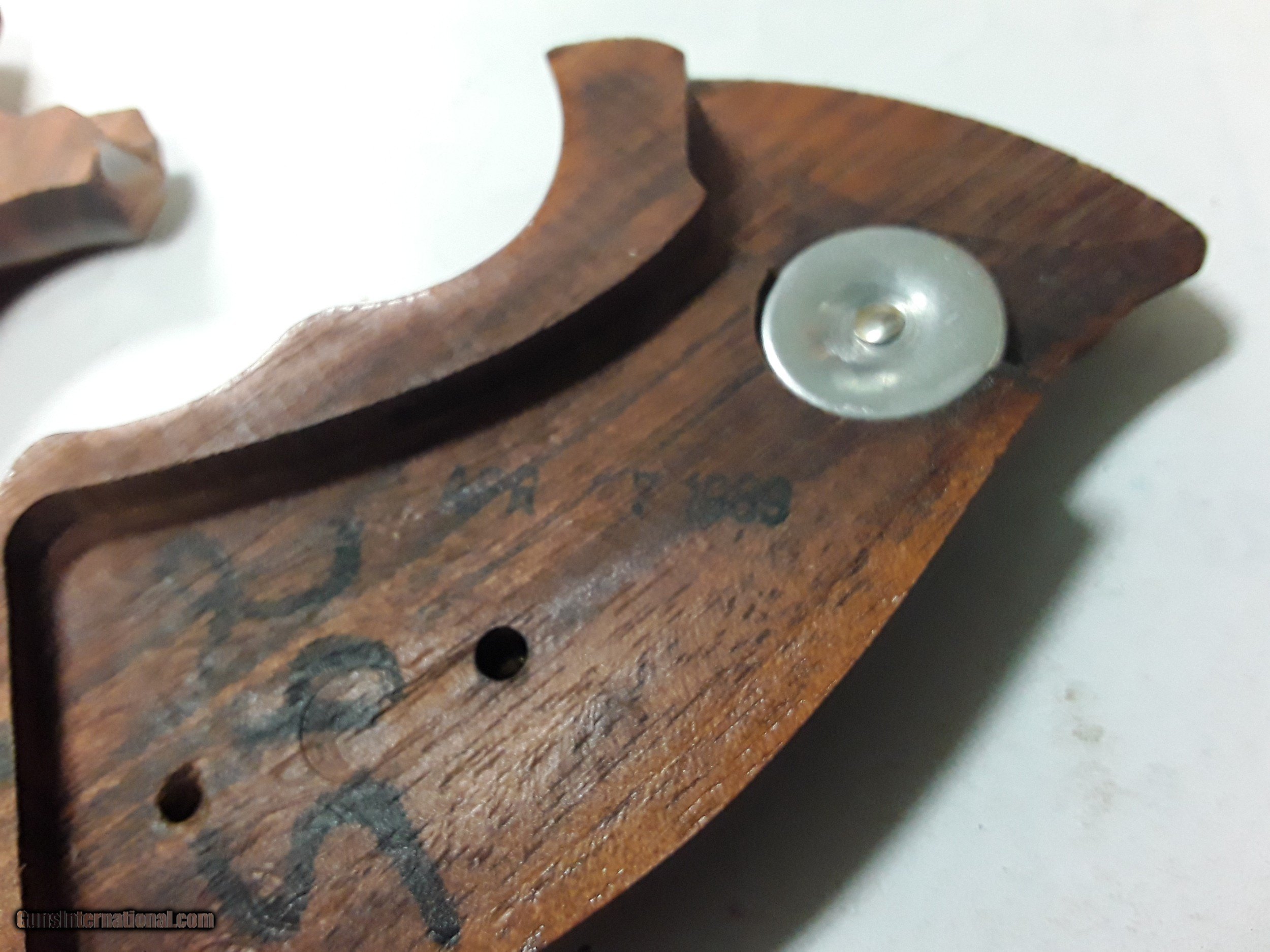 Description: SMITH & WESSON K-FRAME SQUARE BUTT FINGER GROOVED GRIPS WITH SCREW, EXCELLENT CONDITION #295 DATE STAMPED APRIL 7, 1989 $200.00 DELIVERED SOLD |