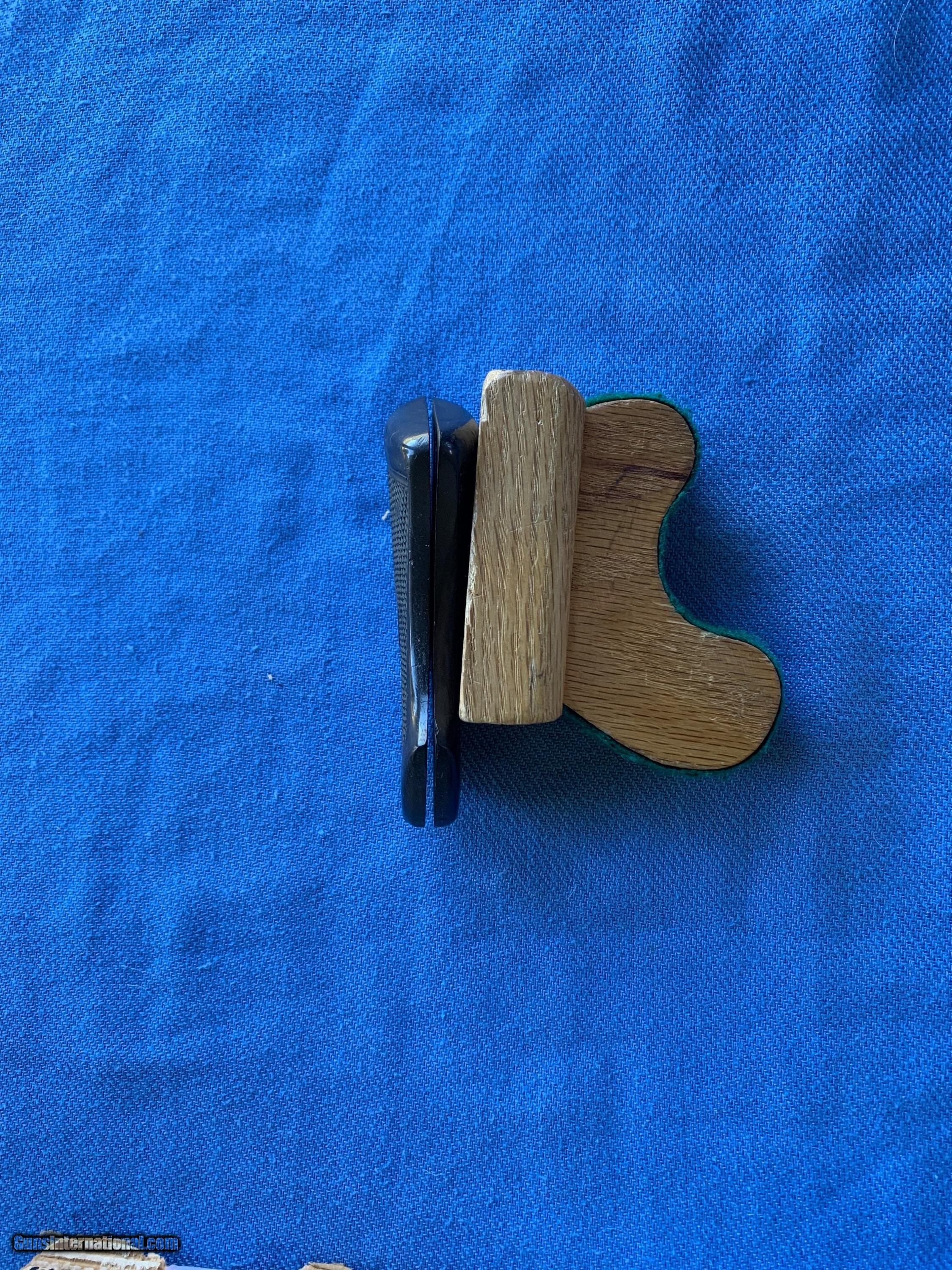 Description: Here's a Excellent set of original grips for a Webley Mk1 through 6 - 455 revolver . Condition is excellent, There's a few tiny chips missing on top of one grip and a tiny chip on bottom "see photos " overall in excellent condition. Please review my photos and email me with any questions? 3 day inspection as allways! Thank you for looking, Little Jo SOLD Handgun Caliber: .455 Webley (.455 Webley Mk I, .455 Revolver, .455 Colt, .455 Colt Mk I, .476 Enfield, .476 Eley, .476/.455) |