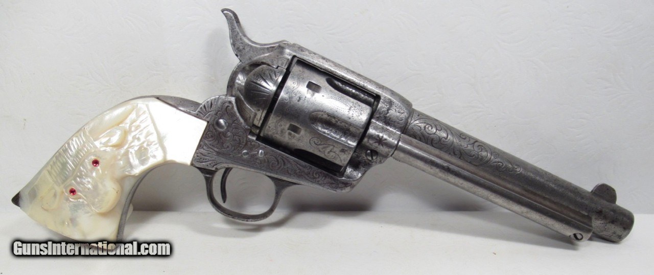 Description: These Carved Steer-Head Pearl Grips Came Off of a Wolf & Klar – Ft. Worth, Texas Colt Single Action Army; Minor damage to both grips (see photos); Marked on Inside “VIIII” of Both Grips; GRIPS ONLY – Revolver for Display Only; See All Photos for Condition; No Texts; Call (254)541-5765 or Email Only; PERSONAL PROPERTY of Harold Wieser; Price: $1,575 + $45 S&H Via USPS PRIORITY MAIL; Payment Address: Harold Wieser - 1466 U.S. Hwy 77 - Rosebud, TX 76570; SEND PAYMENTS VIA USPS PRIORITY MAIL; SOLD |