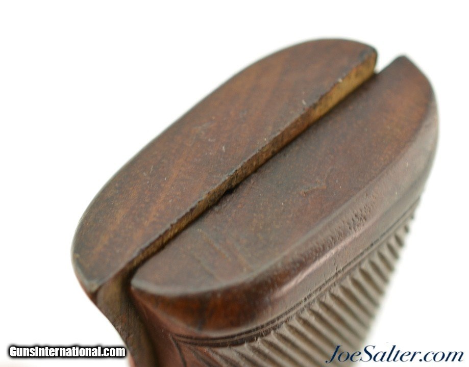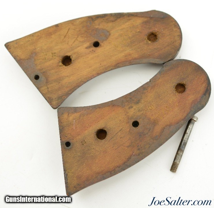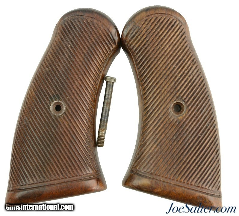 Description: This is a set of genuine WWII .38 Enfield No.2 wooden grips in excellent condition with light wear and original screw. These are crown marked and have initials, "RP" "CWM" scribes into the back. These grips retain original shape and finish, offering an authentic restoration or replacement option for collectors and shooters seeking period-correct ergonomics and appearance.; Price: $125.00 Contact Seller |