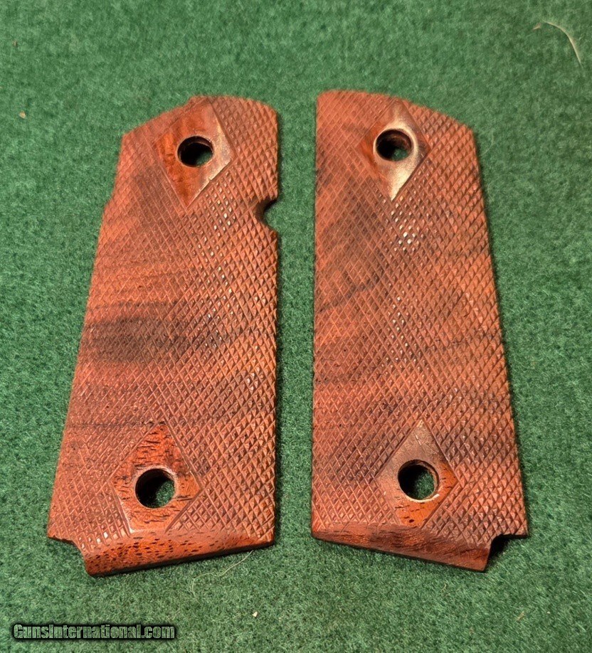 These grips are made out of some very nicely figured walnut. Fits the smaller Officer size frames. Cut for ambidextrous safety.