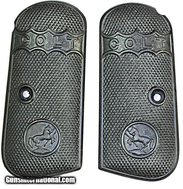 Description: COLT 1903 EARLY STYLE GRIPS. Serial # Below 72,000. Our New Molding Technology Produces Mirror Perfect Reproductions. Guaranteed Fit! Will not chip or shrink! Free Shipping in U.S. International Shipping: $15.00, Countries Limited. Please email for questions or payment options. Grip Screws Also Available Separately. SOLD |