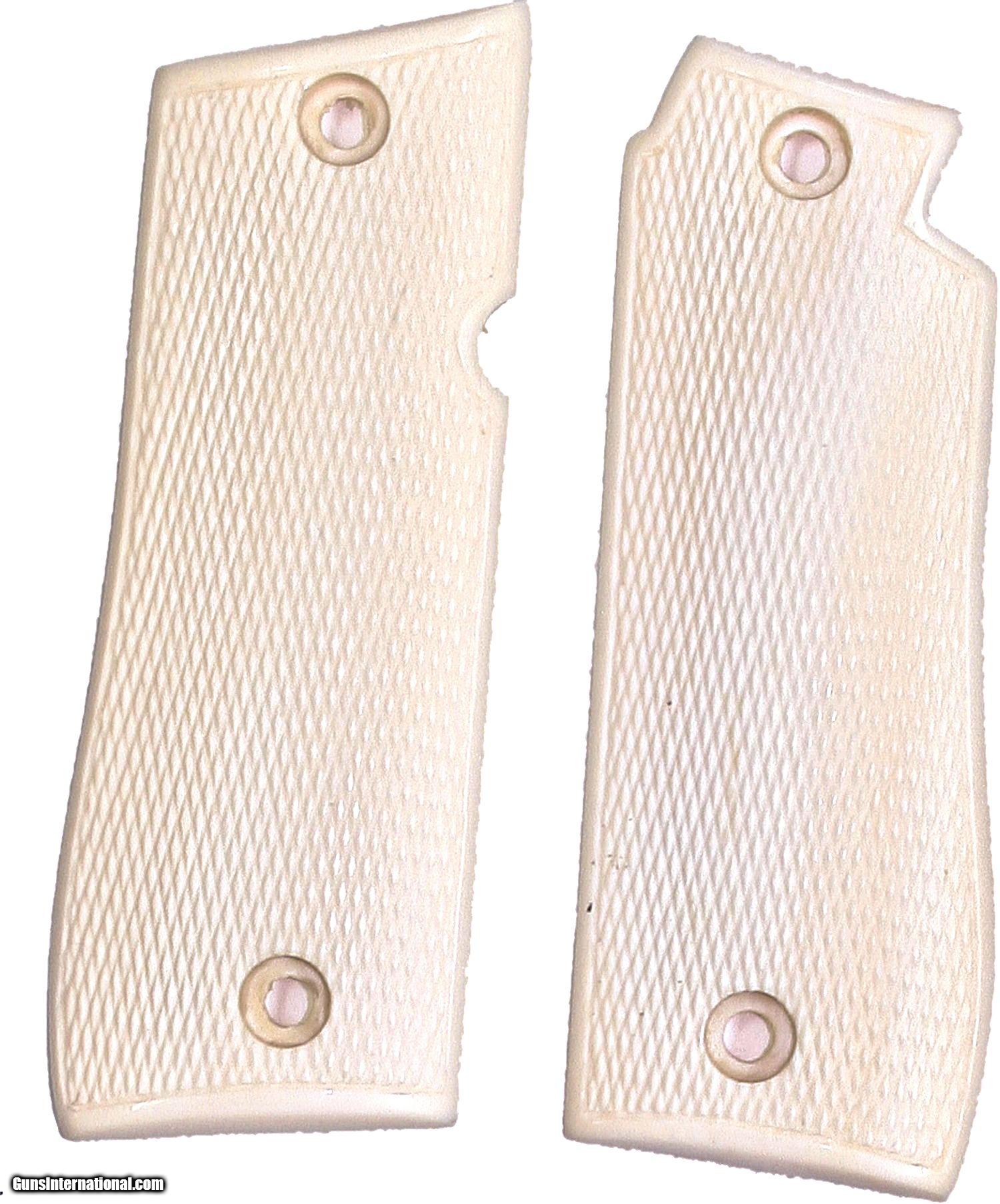 Description: COLT .380 GOVERNMENT MODEL GRIPS COLT MUSTANG PLUS II GRIPS CHECKERED, REAL IVORY (Pre-Ban) Genuine Elephant Ivory Grips with beautiful grains and color variations. Grips may differ slightly from ones pictured. No International Sales on Real Ivory. Shipping in U.S.: $20.00. Please email for questions or payment options. 6/6/2016: Important Announcement For Our Real Elephant Ivory Customers: Effective 7/6/2016, New U.S. Fish & Wildlife Law Takes Effect: No Interstate Sales of Real Elephant Ivory Grips. Any Elephant Ivory Grips Ordered & Paid for By July 5th, Will Be Made, Delivered & Shipped. They Will No Longer Be Available, Except For N.C. Customers/Residents After That Time. IF YOU WANT TO BUY ELEPHANT IVORY GRIPS, ACT NOW! SOLD |