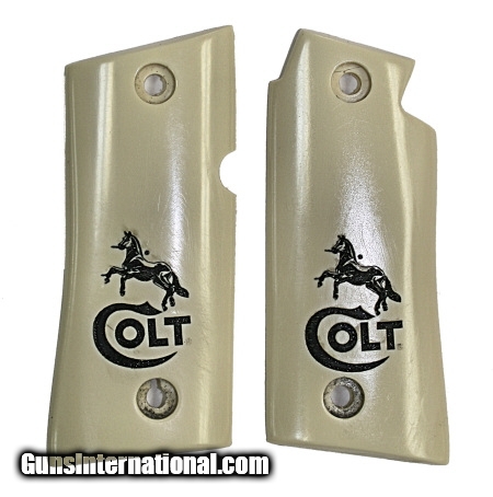Description: COLT MUSTANG & POCKETLITE. CLASSIC IVORY-LIKE™ REPRODUCTION GRIPS WITH LASER ENGRAVED "COLT" & RAMPANT COLT ON BOTH SIDES. Special Sale on Colt Logo Laser Engraved Grips. APRIL 1, 2015 to June 21, 2015 Price Reduced $20, From $70 to $50. No Longer Available After June Free Shipping in U.S. International Shipping: $15.00, Countries Limited. Please email for questions or payment options. SOLD |