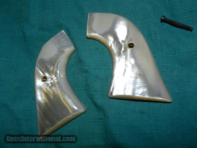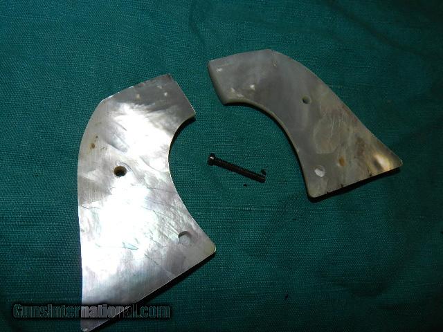 Description: Quality natural mother of Pearl grips getting scarce as the ocean doesn't produce shells big enough to cut a set of grips due to pollution!The set for a Colt SAA has fine coloring, and comes with a screw. You can dress up that old Colt and it will look like a million! Check my inventory for great buys on gun parts, and grips.I hope you like my wide selection of unusual guns. I try to keep the prices affordable, which means I make less money than most dealers. If you BUY IT NOW you must still contact us for details buy it now doesn't end the sale, it just sends an email telling us you want to buy this gun. Some guns are required shipment to a gun dealer near you for a transfer to you when it arrives. With the widest selection of older guns at great prices, We don’t have a store, and sell on the internet only. We don’t have a site. OUR DESCRIPTIONS ARE ACCURATE.THREE DAY INSPECTION ON ALL PURCHASES. SOLD |