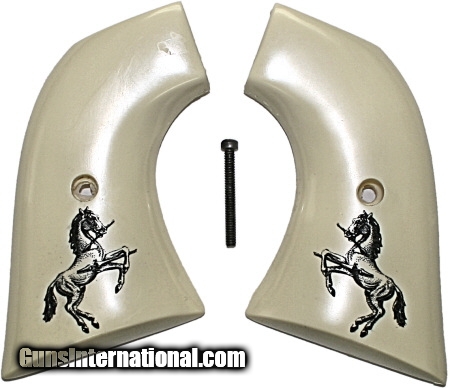 Description: COLT SINGLE ACTION ARMY OVERSIZED GRIPS. CLASSIC IVORY-LIKE™ WITH LASER ENGRAVED RAMPANT COLT ON BOTH PANELS. Special Sale on Colt Logo Laser Engraved Grips. APRIL 1, 2015 to June 21, 2015 Price Reduced $20, From $70 to $50. No Longer Available After June Free Shipping in U.S. International Shipping: $15.00, Countries Limited. Please email for questions or payment options. SOLD |