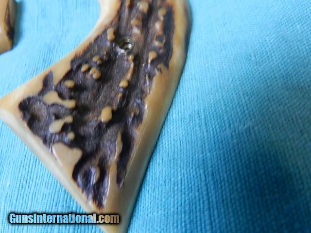 Description: A great pair of vintage Colt SAA stag grips with a screw. You are buying a set of grips , not a gun, not grip straps , just grips. These fit a 1st gen very well, and can be used on a 2nd gen gun.Please check my other unusual and rare grips. We don’t have asite .I prefer money orders or a check. Item ships when funds come in. If you can only pay with a card let me know. I’m sorry I don’t list my phone number, did that for 30 days, never again.. I can’t talk on the phone all day…who will ship the guns? I’m just one person, and it’s very busy here! I do a brisk volume! I hope you like my wide selection of unusual guns, knives and gun parts. Shipping price determined by zip code. I try to keep the prices affordable, which means I make less money than most dealers. You won’t get altitude sickness with my prices! I consistently have the best selection of older guns If you attempt to buy, you must still contact us for details, buying doesn't end the sale, it just sends an email telling us you want to buy this gun. A phone call won’t secure a sale! Not home many times, the first buyer by email buys the gun !Thissite does not close down a sale when you do a BUY! I can get six buys in an hour, first buyer to email gets the guns, others are in second place! Best to send another email . Sometimes not home to get calls. Some guns are required shipment to a gun dealer near you for a transfer to you when it arrives. With the widest selection of older guns at great prices, We don’t have a store, and sell on the internet only. SOLD |