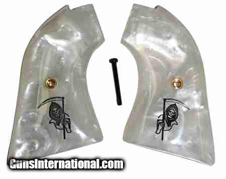 Description: COLT SCOUT & FRONTIER WITH LASER ENGRAVED GRIM REAPER. CLASSIC™ PEARL PREMIUM REPRODUCTION GRIPS. WHITE. THESE GRIPS HAVE A VERY DEEP IRIDESCENT LOOK, THE BEST AVAILABLE. Free Shipping in U.S. International Shipping: $15.00, Countries Limited. Please email for questions or payment options. SOLD |