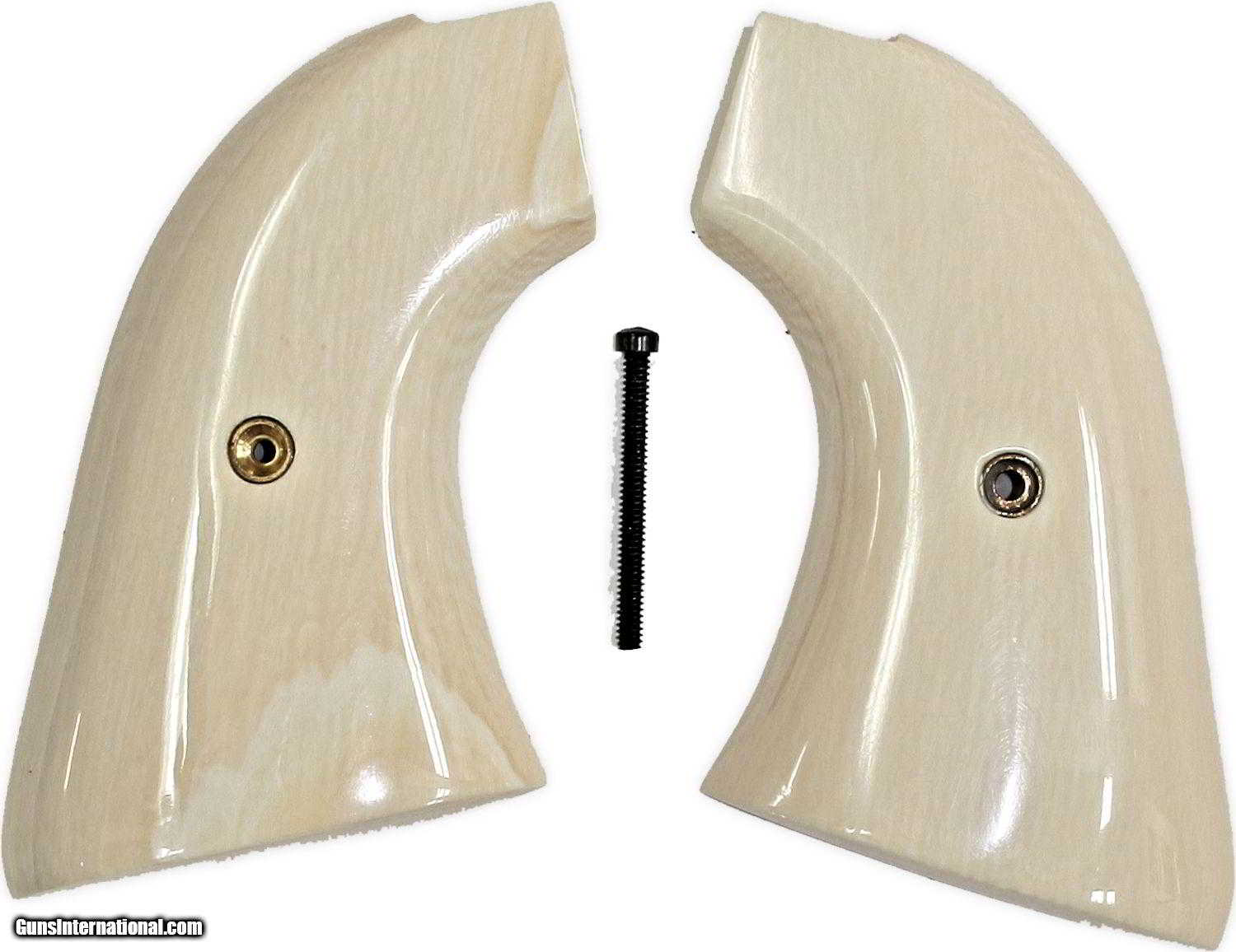 Description: COLT SCOUT & FRONTIER GRIPS Colt Scout .22, Colt Frontier .22, New Colt Frontier .22, Frontier Scout, Frontier Scout Buntline & Colt .22 Peacemaker SMOOTH, REAL IVORY (Pre-Ban) THESE GRIPS REQUIRE SOME FITTING CUSTOM MADE TO FRAME OF CUSTOMER CALL FOR DETAILS. Genuine Elephant Ivory Grips with Beautiful Grains and Color Variations. Important Announcement For Our Real Elephant Ivory Customers: Effective 7/6/2016, New U.S. Fish & Wildlife Law Takes Effect: No Interstate or International Sales of Real Elephant Ivory Grips. Elephant Ivory Grips Will No Longer Be Available, Except For N.C. Customers/Residents After 7/5/16. PLEASE DO NOT ATTEMPT TO ORDER ELEPHANT IVORY GRIPS, IF YOU ARE OUTSIDE OF N.C, AS IT IS PROHIBITED BY LAW. Please consider looking at our Siberian Mammoth Ivory & Fossilized Walrus Ivory Grips. We Will Be Adding More Grips in the Future. They Are All One of a Kind, Rare Grips. We Are Only Selling Our Current Inventory to N.C. Customers. We Will No Longer Be Able To Make Custom Grips in Elephant Ivory, Even For N.C. Residents. We Can No Longer Order From Our Pre-Ban Supplier. However, We Will Be Making Siberian Mammoth Ivory & Fossilized Walrus Ivory Grips. Shipping: $20.00, Insured. Please email for questions or payment options. SOLD |