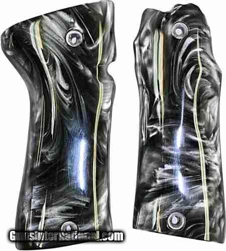 Description: LLAMA MAX II LARGE FRAME AUTO .45 Auto, .38 Super & 9mm CLASSIC PEARL PREMIUM REPRODUCTION GRIPS BLACK THESE GRIPS HAVE A VERY DEEP IRIDESCENT LOOK. Pearl Premium Grips Are Made of an Engineered Urethane That is Perfect For Reproducing Beautiful Grips. Will not chip or shrink! 1 Pair Left Shipping in U.S.: $5.00. International Shipping: $20.00, Countries Limited. Please email for questions or payment options. SOLD |