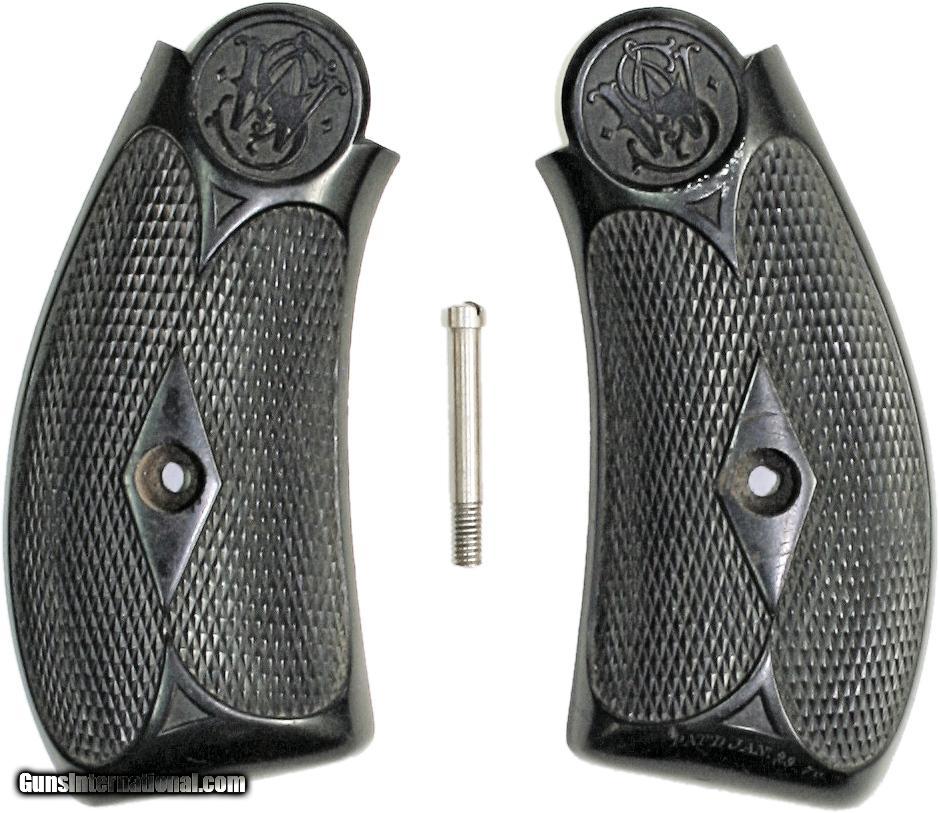 Description: Original Smith & Wesson .44 DA Revolver Grips With Screw Set Excellent Condition Very Sharp Checkering Shipping in U.S.: $5.00. International Shipping: $20.00, Countries Limited. Please email for questions or payment options. SOLD |