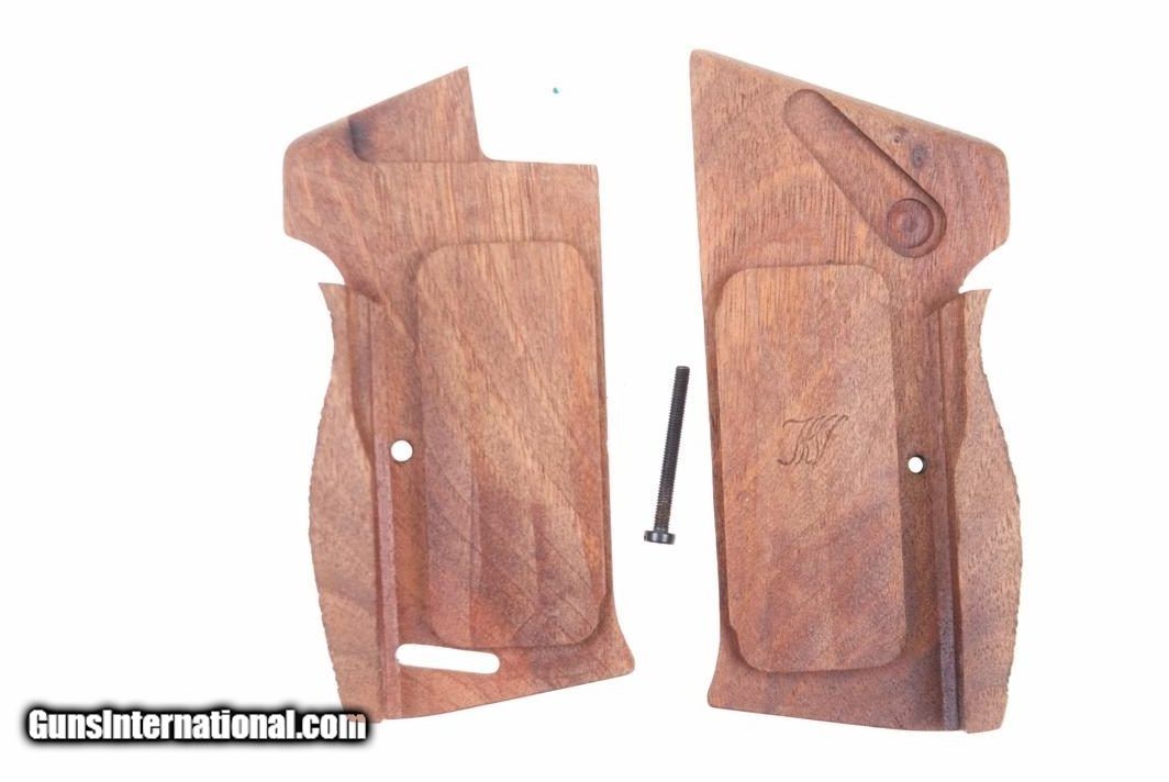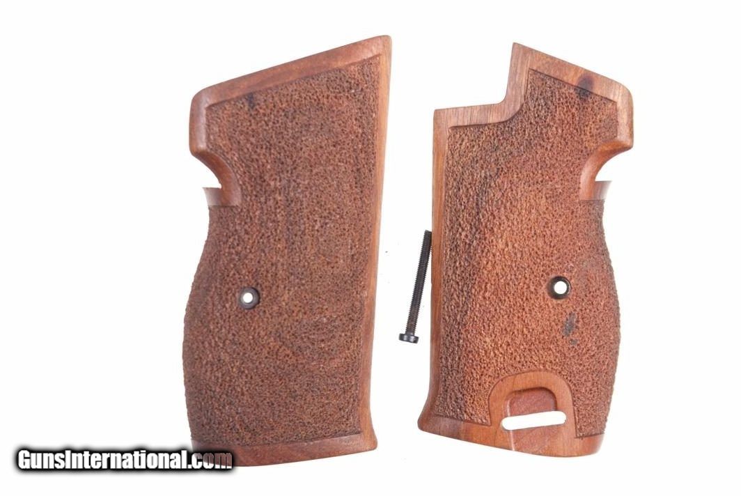 Description: Late commercial grips for SIG P210 series with ergonomic contour and textured surface with well delineated borders. Synopsis: SIG, P210, Commercial, Wooden Grips X-185. Condition: Excellent ~~Insured shipping fee of $35; most packages shipped using FedEx 2nd Day.~~ SOLD Manufacturer: SIG |