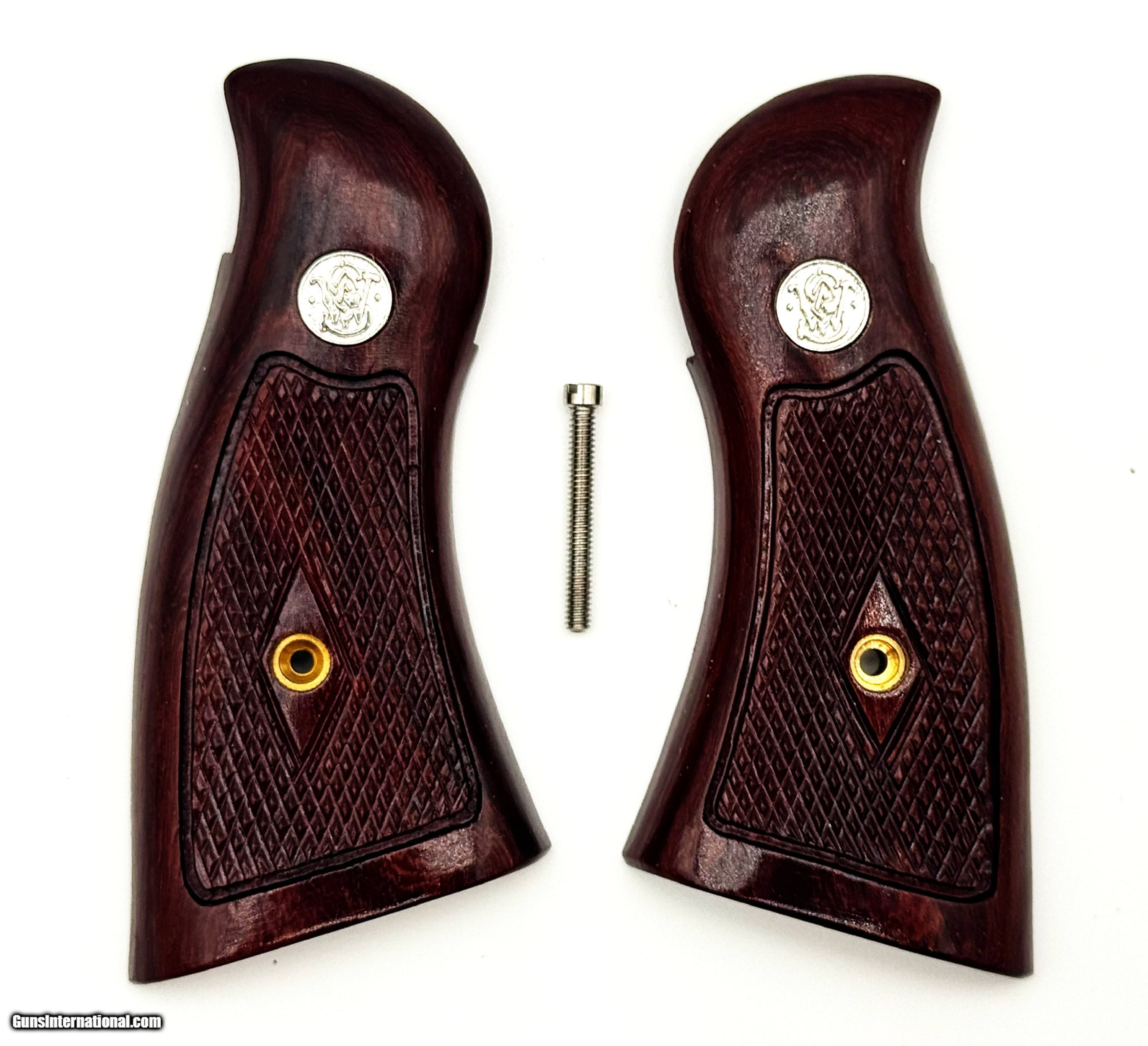 Smith & Wesson N Frame Rosewood Checkered Grips, Magna Style, Square Butt