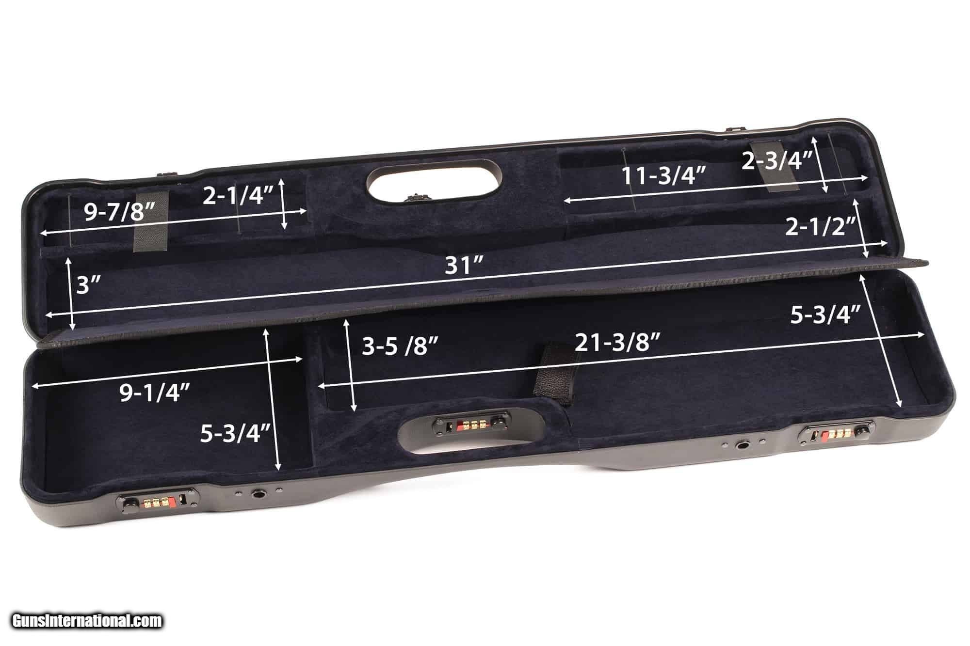 Description: Negrini OU/SXS Ultra-Compact Upland Hunting Shotgun Case – 16405LX/5708 Developed exclusively for flat rib hunting shotguns and 100% made in Italy, the Uplander luxury shotgun hard case is ultra-compact and ultra-light at 5.7 pounds. Fitting any small-bore OU/SXS shotgun with barrels up to 30", this Uplander SXS shotgun sling is approved for air travel and features a hand-detachable sling system to carry hands-free. The Uplander case features a hand upholstered luxury interior and engineered with separate compartments for your stock & receiver and all accessories on one side and storage for barrel & forearm at the top of the gun case. Manufactured with rigid double-wall composite technology, this Negrini 16405lx opens 180° for easy access and has 3 TSA accepted steel combination locks for security. The NEW compact and ultralight SXS shotgun sling is perfect for air travel, car, club, and home. Features Fits Over/Under and SXS shotguns Color: Navy/Rich Tobacco/Navy Patented Quick Detach Padded Sling Weight: 5.75lbs Shotguns to Note: A perfect case for subgauge hunting shotguns The 16405 series is ideal for OU and SXS classic hunting shotguns with barrel and chokes at 31' maximum. It is perfect for subgauge shotguns, and has plenty of room for choke cases, 3 pc cleaning rods and cleaning accessories. About Negrini Gun Cases Negrini gun cases are designed with an ultra-strong double-wall ABS construction. Which consists of a thick thermoformed ABS outer case welded to a rigid thermoformed inner case. Negrini gun cases are fully cushioned and lined with a plush velvet or microfiber. Negrini gun cases patented double wall construction assures maximum shock absorption without breaking. Each gun cases are fitted with hardened steel combination locks and hinges. The locks are recessed to prevent gun case damage on conveyor belts. Negrini gun case interiors are designed with separate compartments for stock and receiver, barrel and forearm as well as accessories. All Negrini gun case materials used are certified to not outgas or corrode firearms. Many colors are available. Limited lifetime warranty. International air travel certified Hardened steel combination Locks for security 100% Made in Italy Lightweight air travel without all the extra baggage fees Limited Lifetime Warranty Manufacturer: Negrini Model: 16405LX/5708 Condition: New Barrel Type: Over and Under, Side by Side Rib: Flat Rib Weight: 7.55 lbs Price: $549.00 Contact Seller |