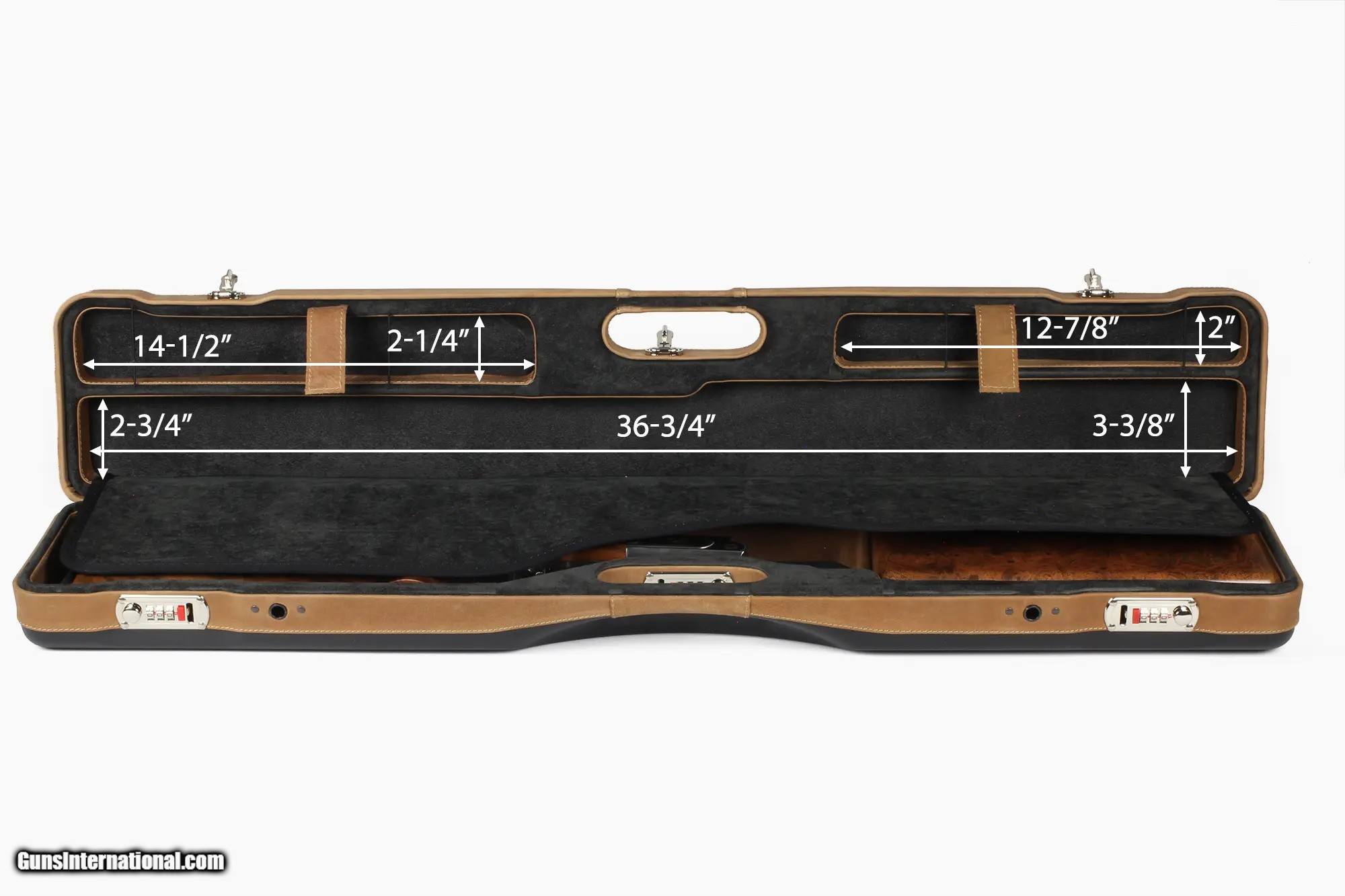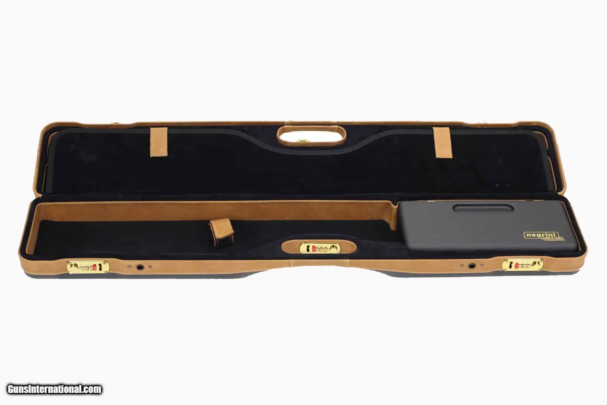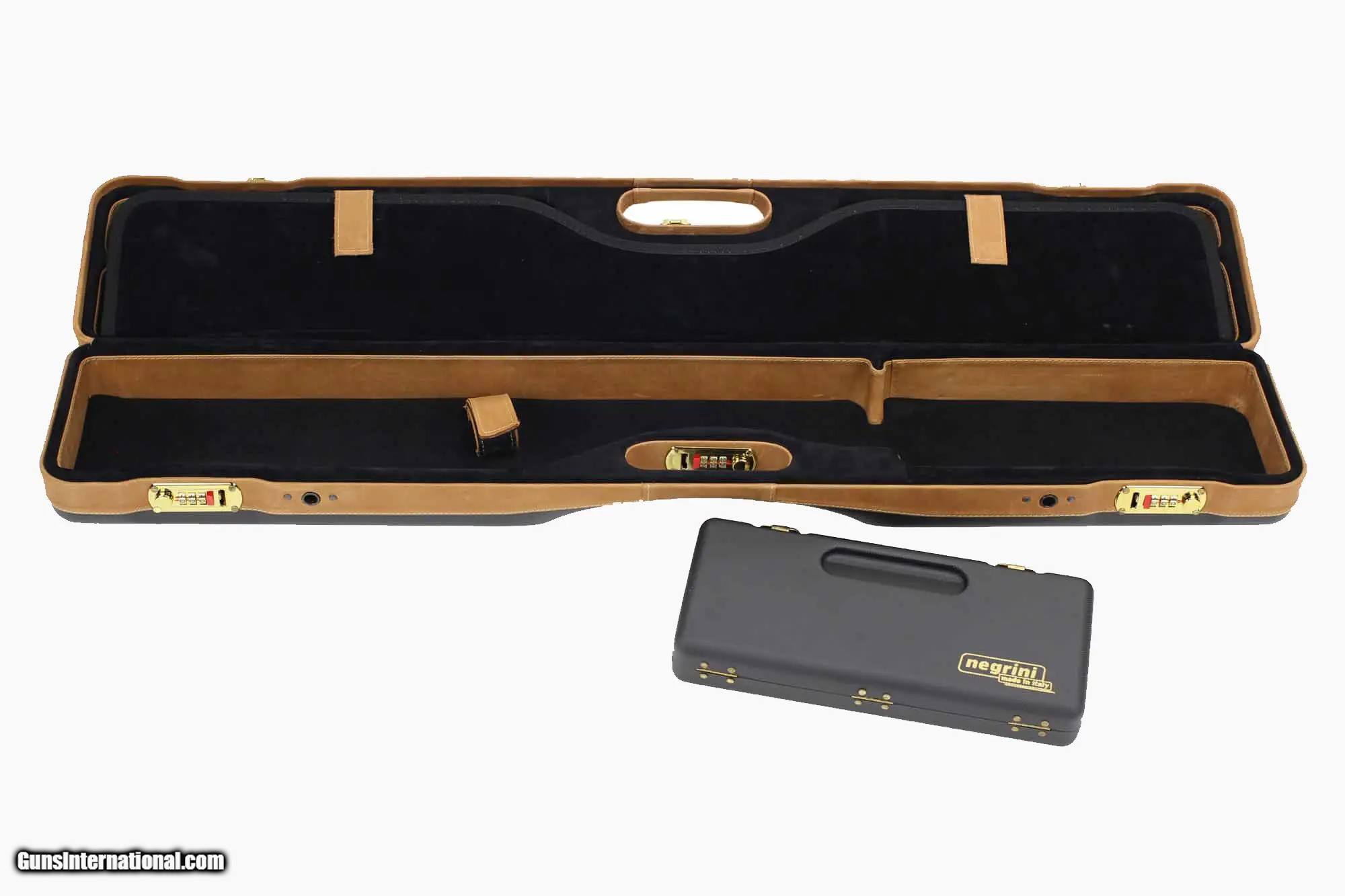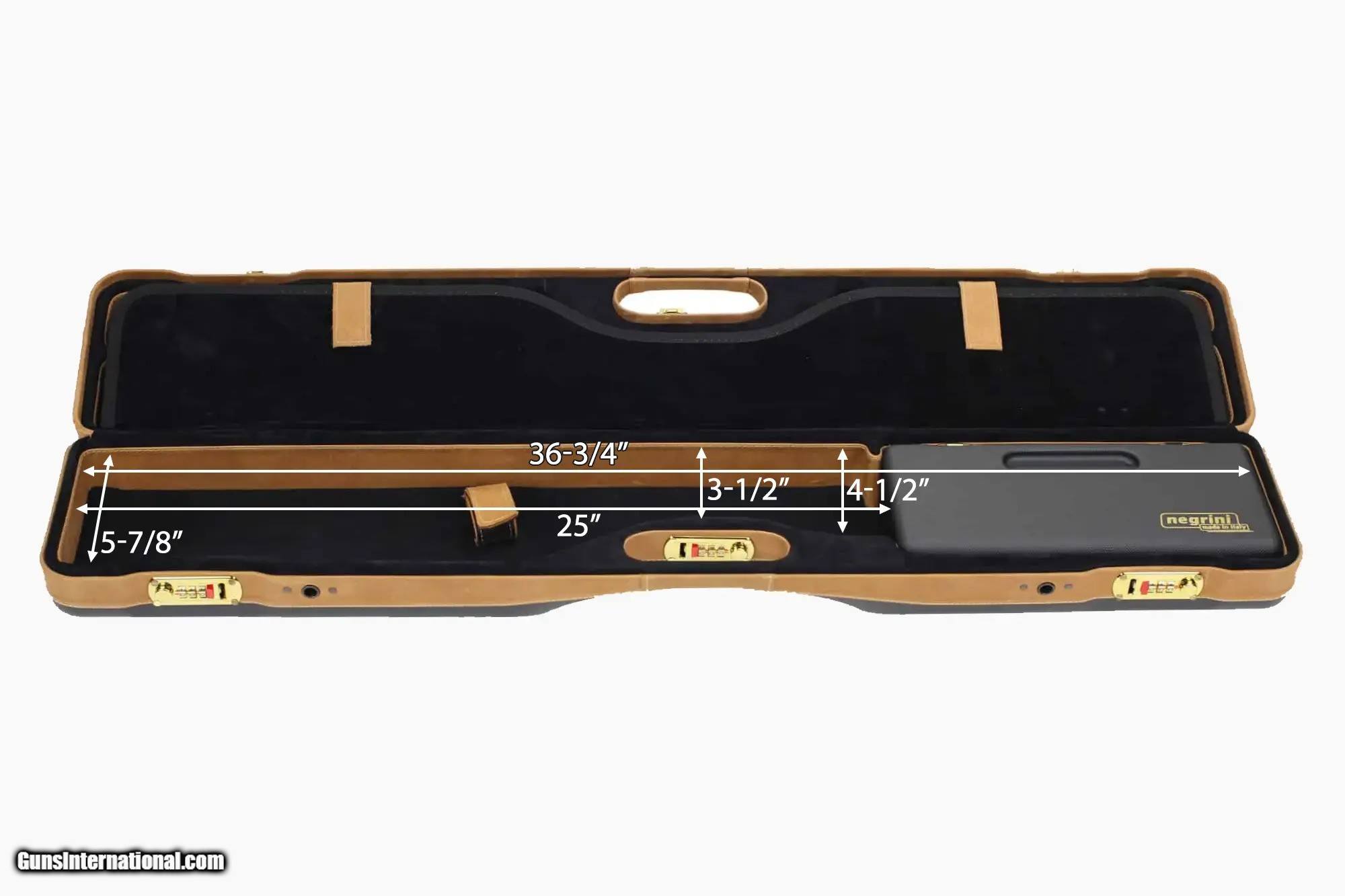 Description: Negrini PLX Leather OU/SXS/Auto/Pump UNICASE Takedown Travel Shotgun Case 34' - 16406PLX-UNI/5903 Based on the popular 16405 Uplander Shotgun case by Negrini of Italy. The all-new 16406PL UNICASE is the next generation of the one-size-fits-all shotgun case. The sleek design of this shotgun hard travel case will appeal to many shotgun shooters. The weight of the new UNICASE tips the scales at 8.40 lbs. Lighter and now more compact, the new UNICASE features the Patented Quick Detach Sling for easy hands-free use with a new interior layout. The new interior stores the stock on the left side of the case which enables Autoloader bolts to face up. The new case fits all shotgun types from O/U, SxS, Autoloader, and Pump shotguns. Install the ABS choke box and the case will fit over-under and side-by-side shotguns. The top side of the case fits barrels up to 36' with smaller compartments for accessories and sling storage. The UNICASE with the PLX trim is hand-finished with an Italian leather cover and a hand-upholstered luxury interior, with leather-trimmed walls. Manufactured with a rigid double-wall technology, the shotgun ABS case opens 180° for easy access and is secured with three TSA accepted steel combination locks for security. NEW, compact, and ultralight, this shotgun hard travel case is suitable for lightweight air travel or car, club, and home storage. Features Color: Black Ext/Nespola Leather/Black Fits Over/Under, SXS, Autoloader or Pump shotguns PLX - Partial Leather Cover/Velvet Interior/Leather Trim Walls Patented Quick Detach Padded Sling 3 TSA accepted combination locks Weight: 8.40 lbs. w/ strap About Negrini Gun Cases Negrini gun cases are designed with an ultra-strong double-wall ABS construction. Which consists of a thick thermoformed ABS outer case welded to a rigid thermoformed inner case. Negrini gun cases are fully cushioned and lined with plush velvet or microfiber. Negrini gun cases' patented double wall construction assures maximum shock absorption without breaking. Each gun case is fitted with hardened steel combination locks and hinges. The locks are recessed to prevent gun case damage on conveyor belts. Negrini gun case interiors are designed with separate compartments for stock and receiver, barrel and forearm as well as accessories. All Negrini gun case materials used are certified to not outgas or corrode firearms. Many colors are available. Limited lifetime warranty. International air travel certified Hardened steel combination Locks for security 100% Made in Italy Lightweight air travel without all the extra baggage fees Limited Lifetime Warranty Manufacturer: Negrini Model: 16406PLX-UNI/5903 Condition: New Barrel Type: Over and Under, Semi Rib: Flat Rib, Mid-Rib, A Weight: 7.55 lbs Price: $769.00 Contact Seller |