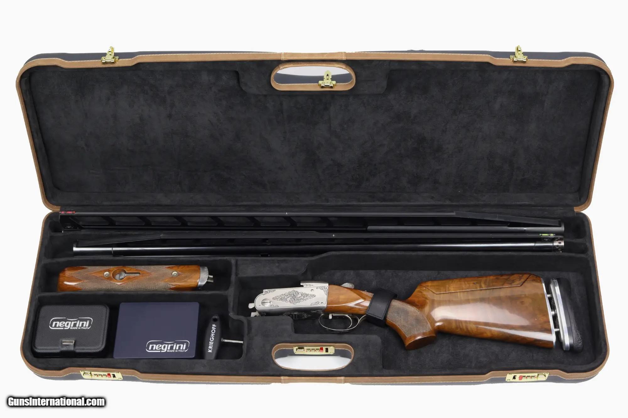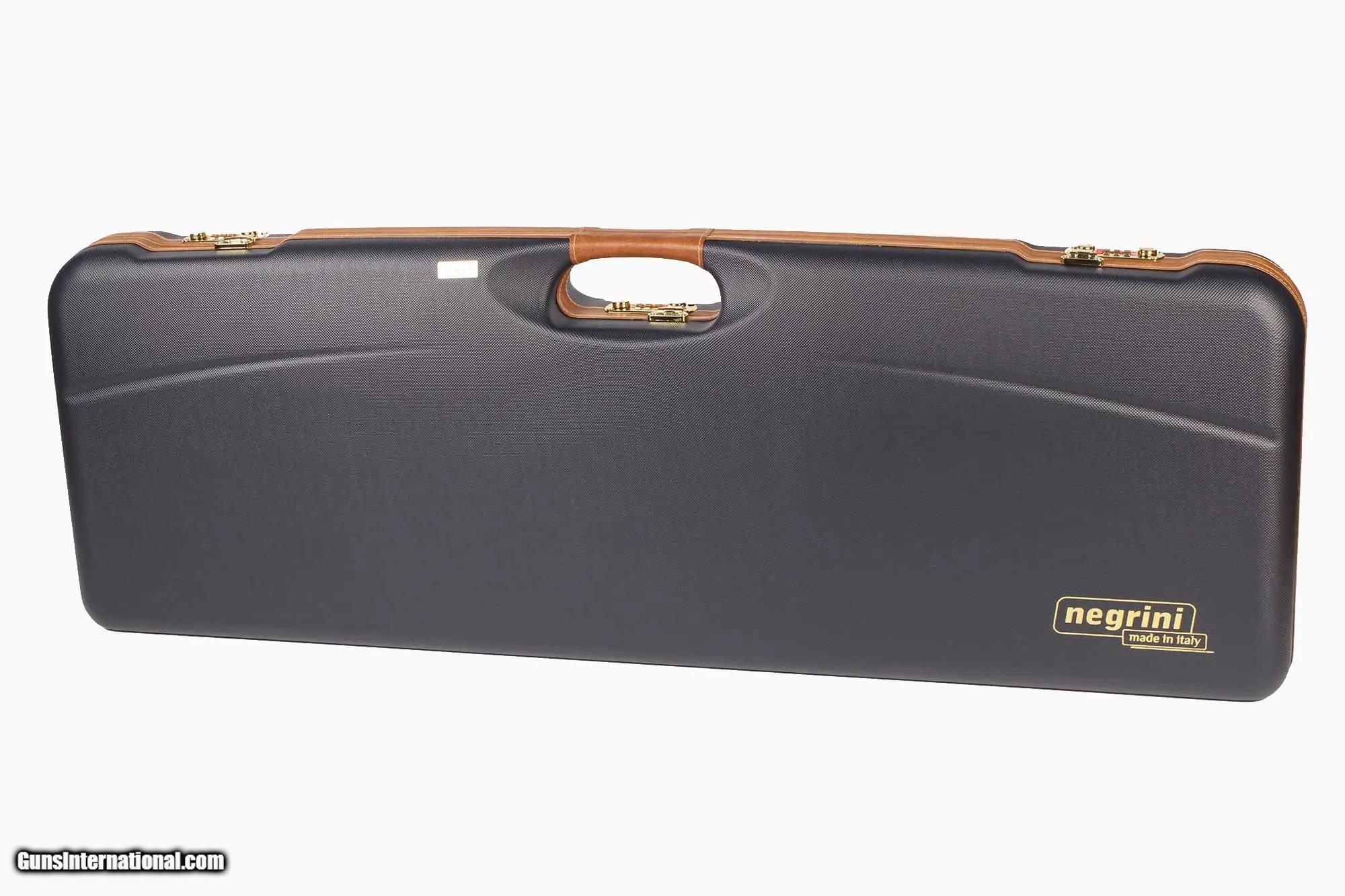 Description: Negrini O/U Deluxe High Rib Trap/Sporting Combo Shotgun Case 1653LX/5005 The Negrini 1653LX/5005 combo hard shotgun case is perfect for any Over Under shotgun with two high rib barrels up to 36-1/2. The trap combo gun case features a padded luxury interior with separate compartments for your stock & receiver, barrels, forearm, and accessories. The high rib barrels sit vertically in the gun case with the forearm off. There is extra room for larger stocks with raised combs. This high rib trap shotgun case is perfect for air travel, car, club, and home. LX Luxury Italian leather trim and handle Fits Wenig, Pro-Soft, and Stock Lock custom stocks 100% Italian leather About Negrini Gun Cases Negrini gun cases are designed with an ultra-strong double-wall ABS construction. Which consists of a thick thermoformed ABS outer case welded to a rigid thermoformed inner case. Negrini gun cases are fully cushioned and lined with plush velvet or microfiber. Negrini gun cases' patented double-wall construction assures maximum shock absorption without breaking. Each gun case is fitted with hardened steel combination locks and hinges. The locks are recessed to prevent gun case damage on conveyor belts. Negrini gun case interiors are designed with separate compartments for stock and receiver, barrel and forearm as well as accessories. All Negrini gun case materials used are certified to not outgas or corrode firearms. Many colors are available. Limited lifetime warranty. International air travel certified Hardened steel combination Locks for security 100% Made in Italy Lightweight air travel without all the extra baggage fees Limited Lifetime Warranty Manufacturer: Negrini Model: 1653LX/5005 Condition: New Barrel Type: Over and Under Rib: Flat Rib, Mid-Rib, High Rib, Adjustable High Rib Weight: 11.10 lbs Price: $549.00 Contact Seller |