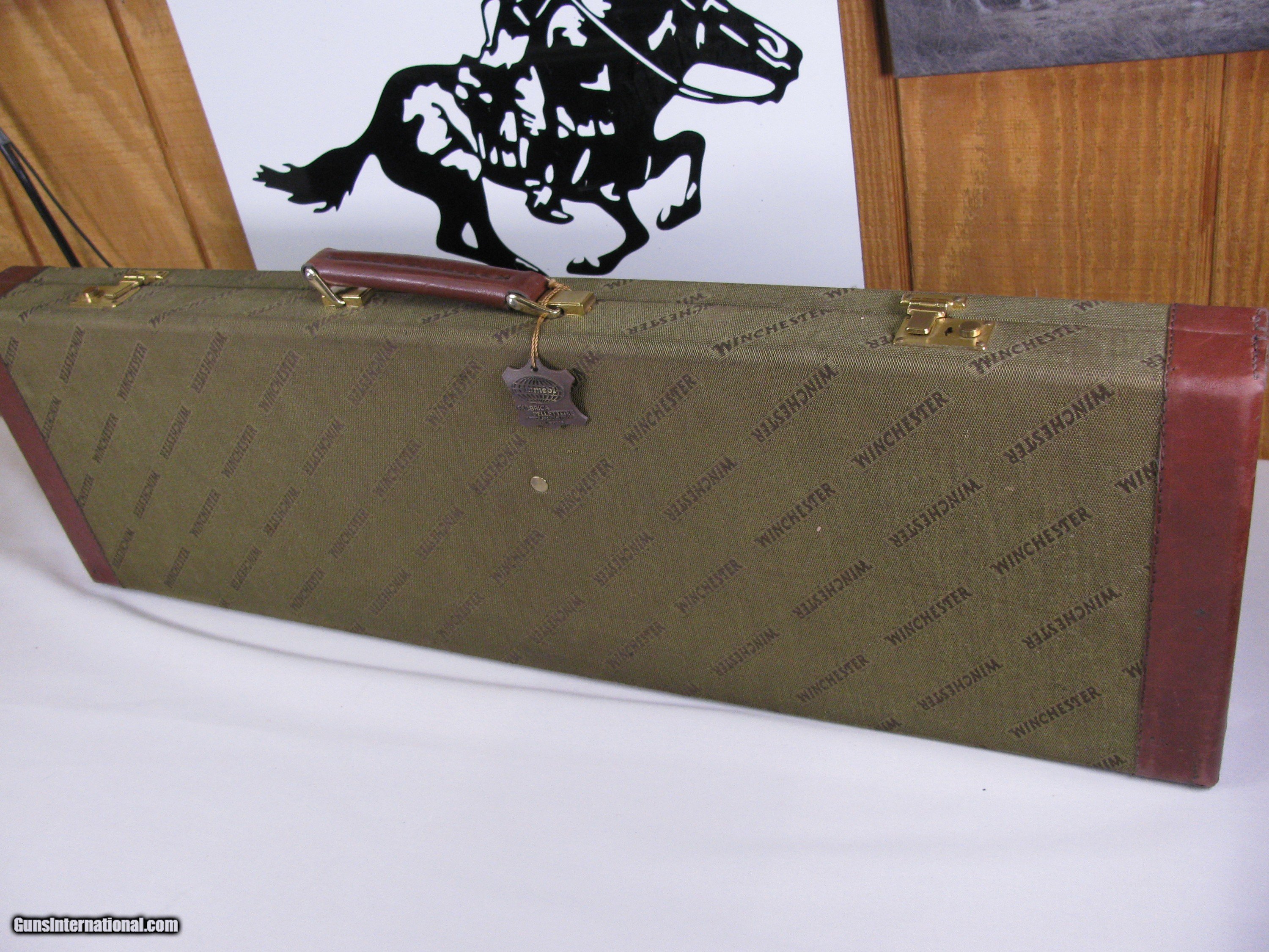 Description: 7920 Winchester Green take down Shotgun case. Outside is nice, Has the original keys. Has the red interior, Will take up to and including a 30” Barrel. Has the hang tag as well! SOLD |