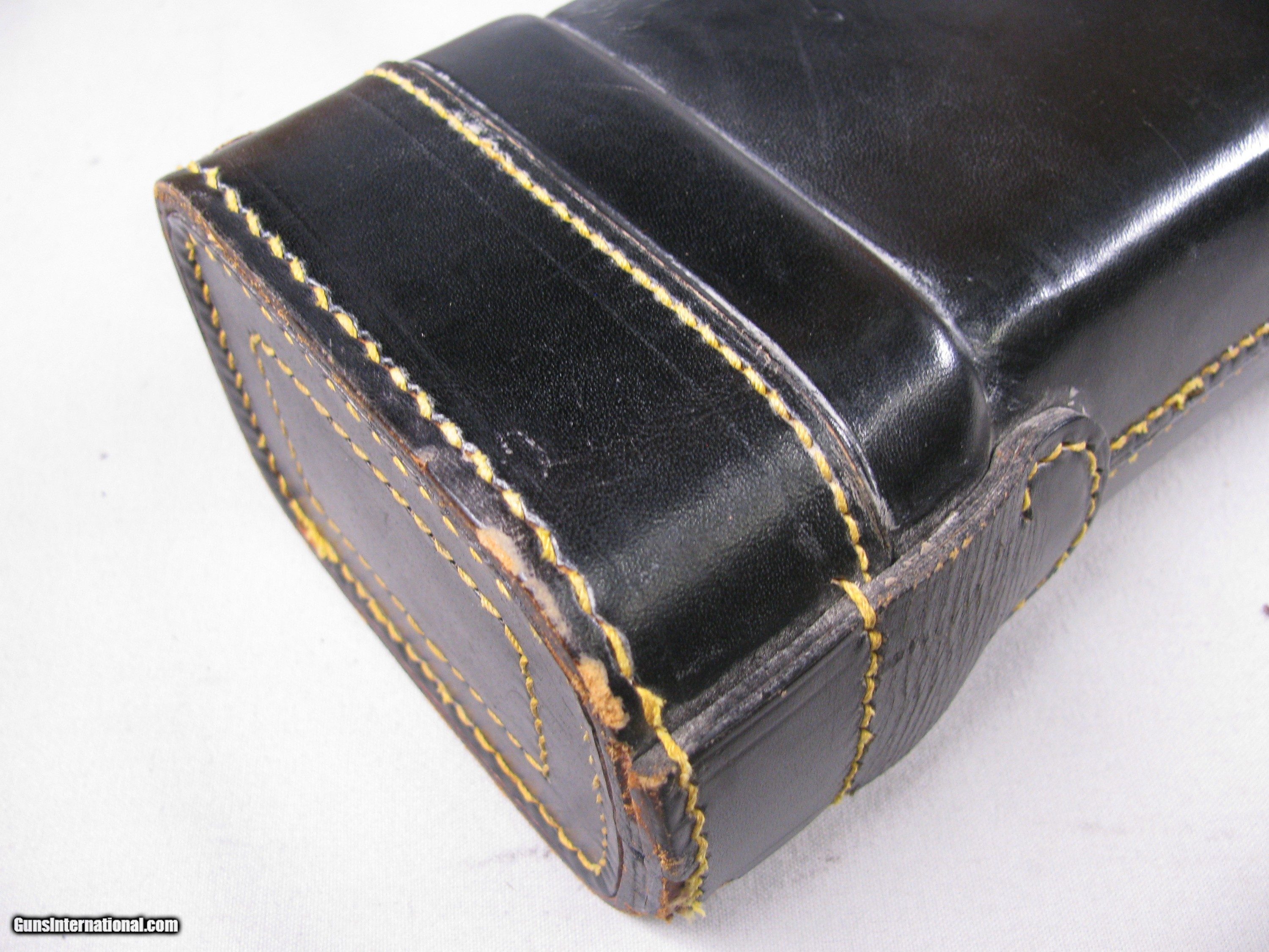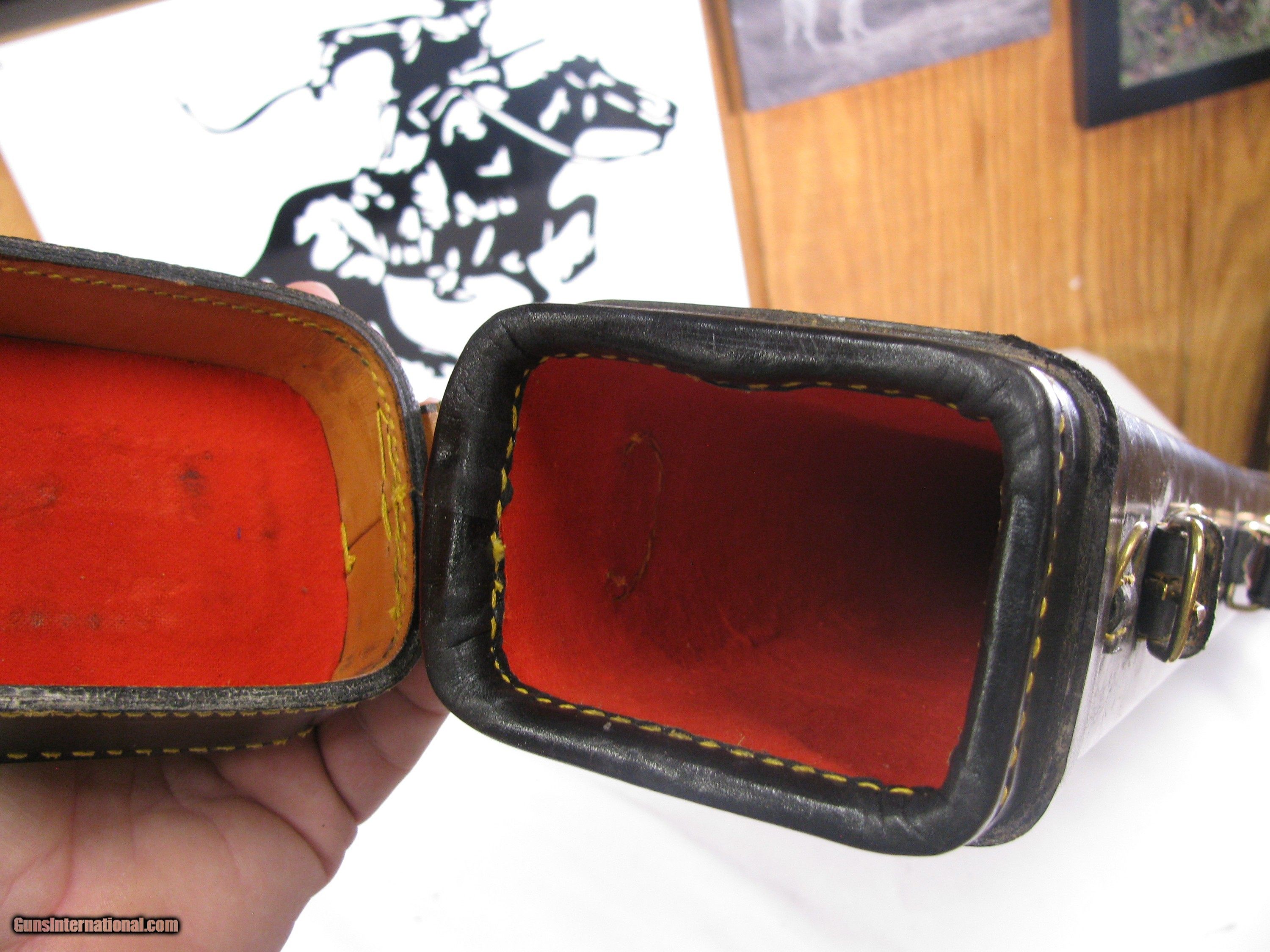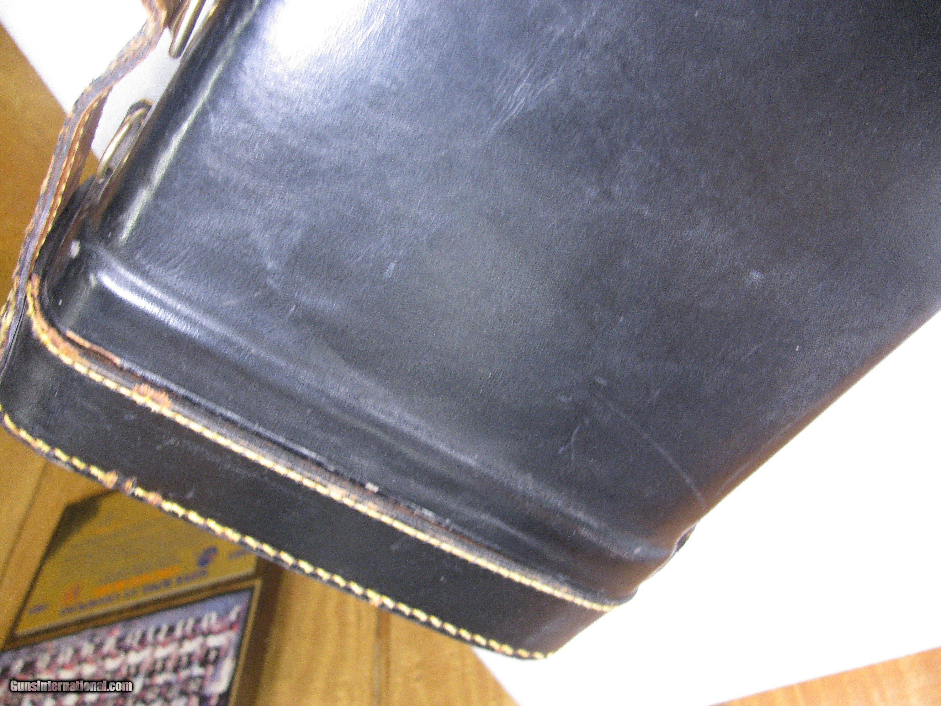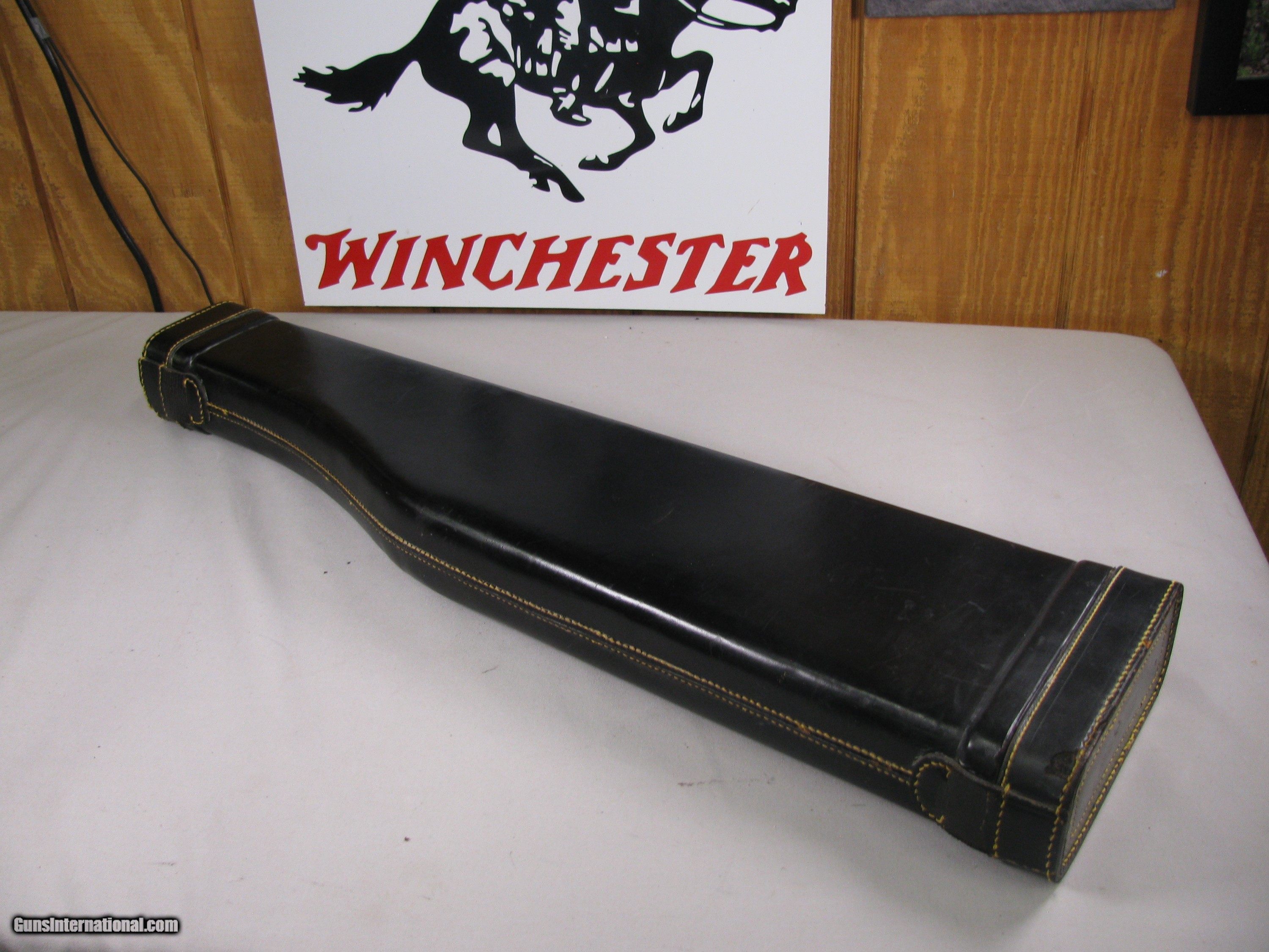 Description: 8750 Black Leather Shotgun Case, Hog Leg, Will take Side by Sides and Over and under. Will hold up to a 28” Barrel. SOLD |
