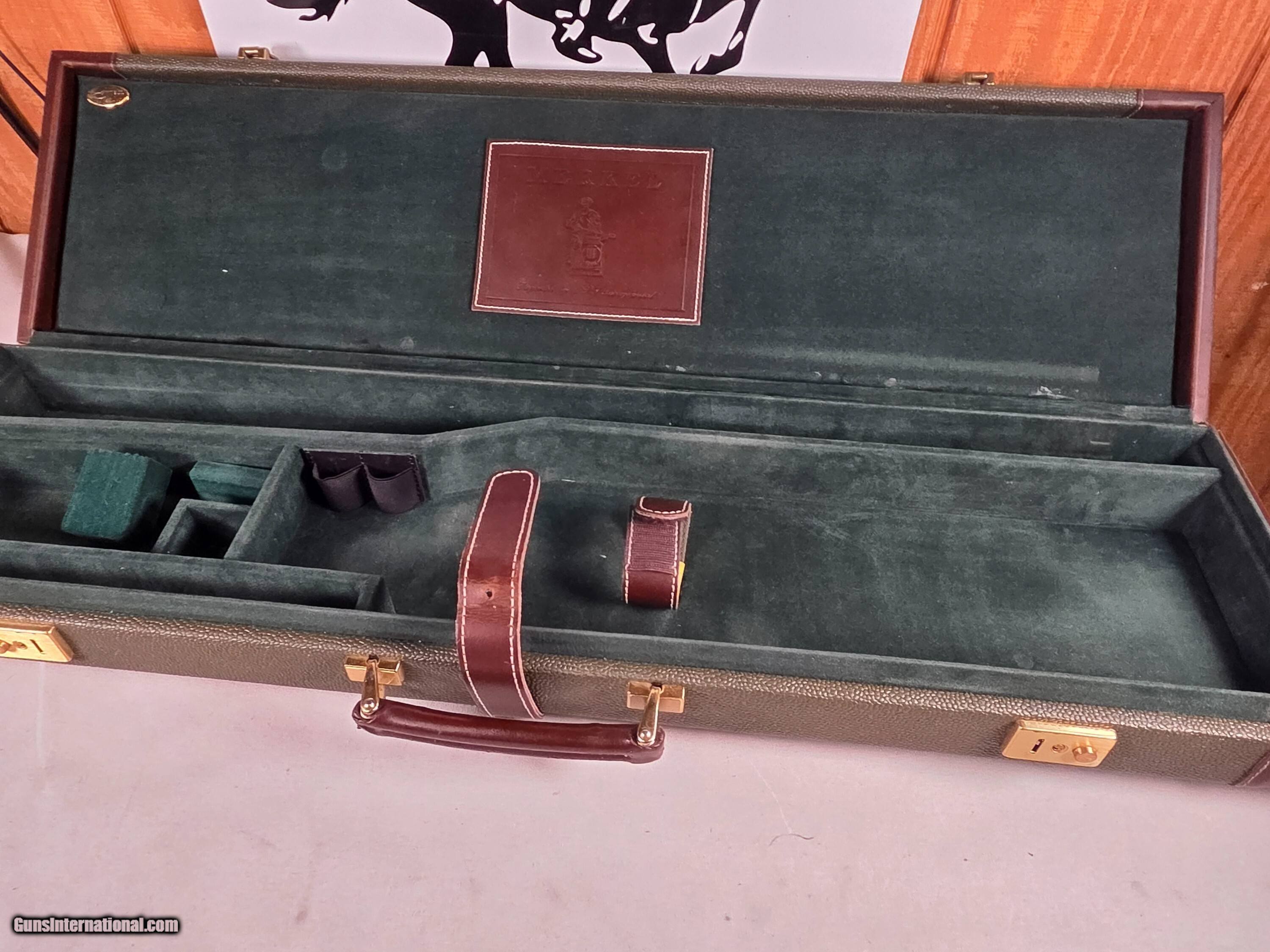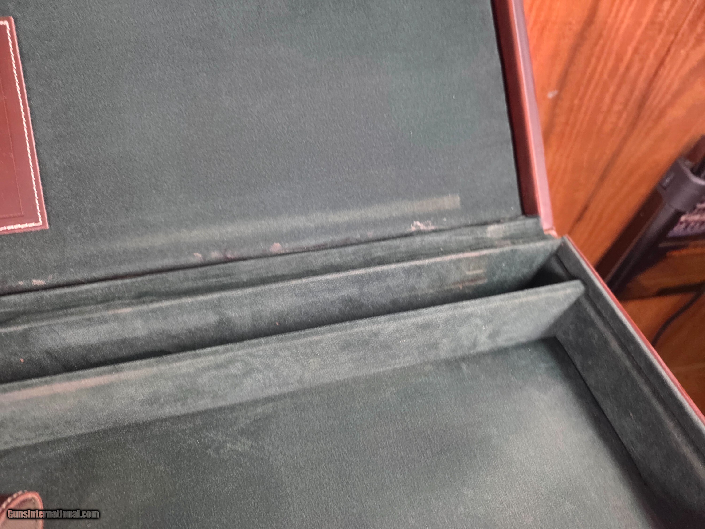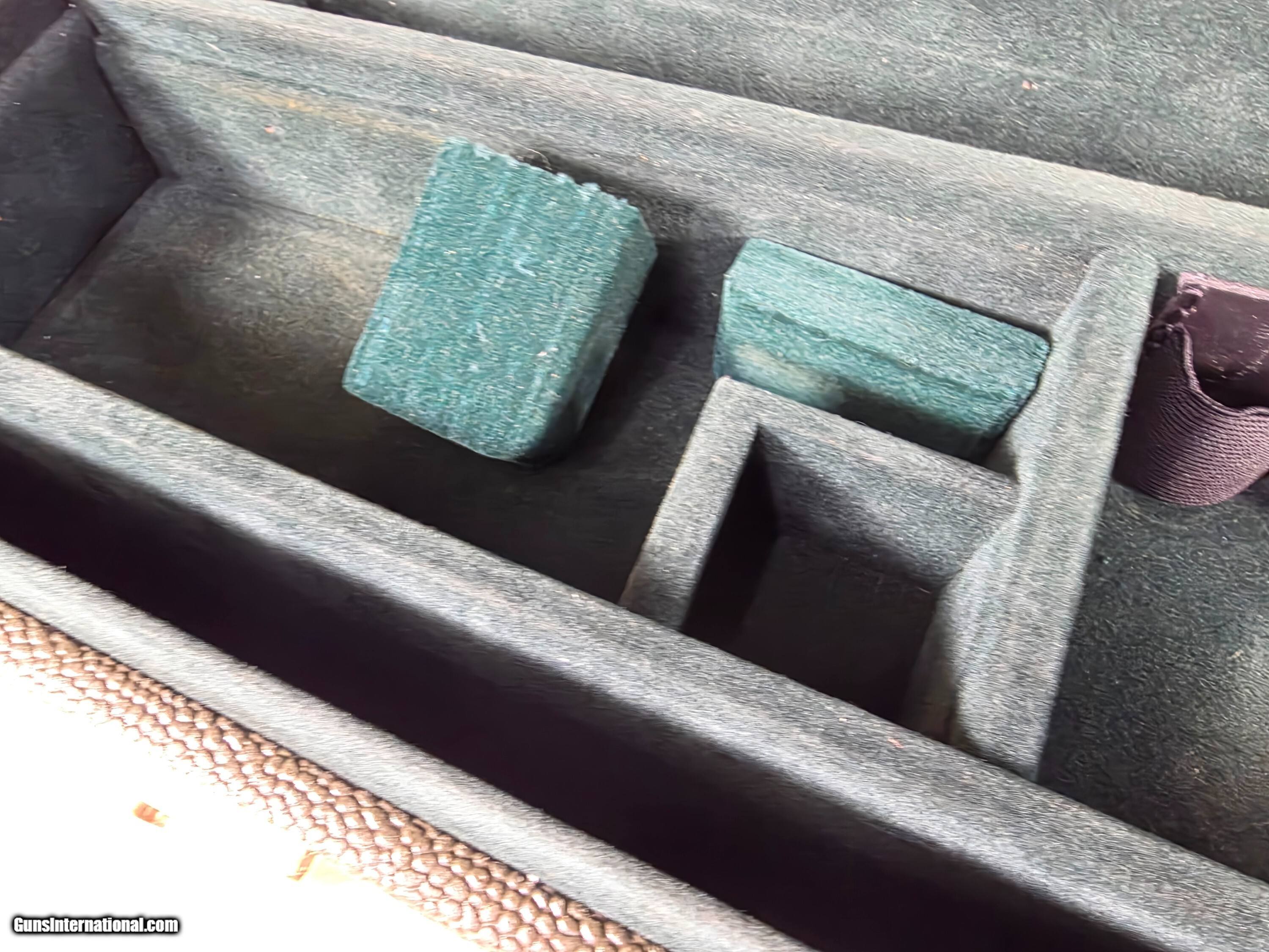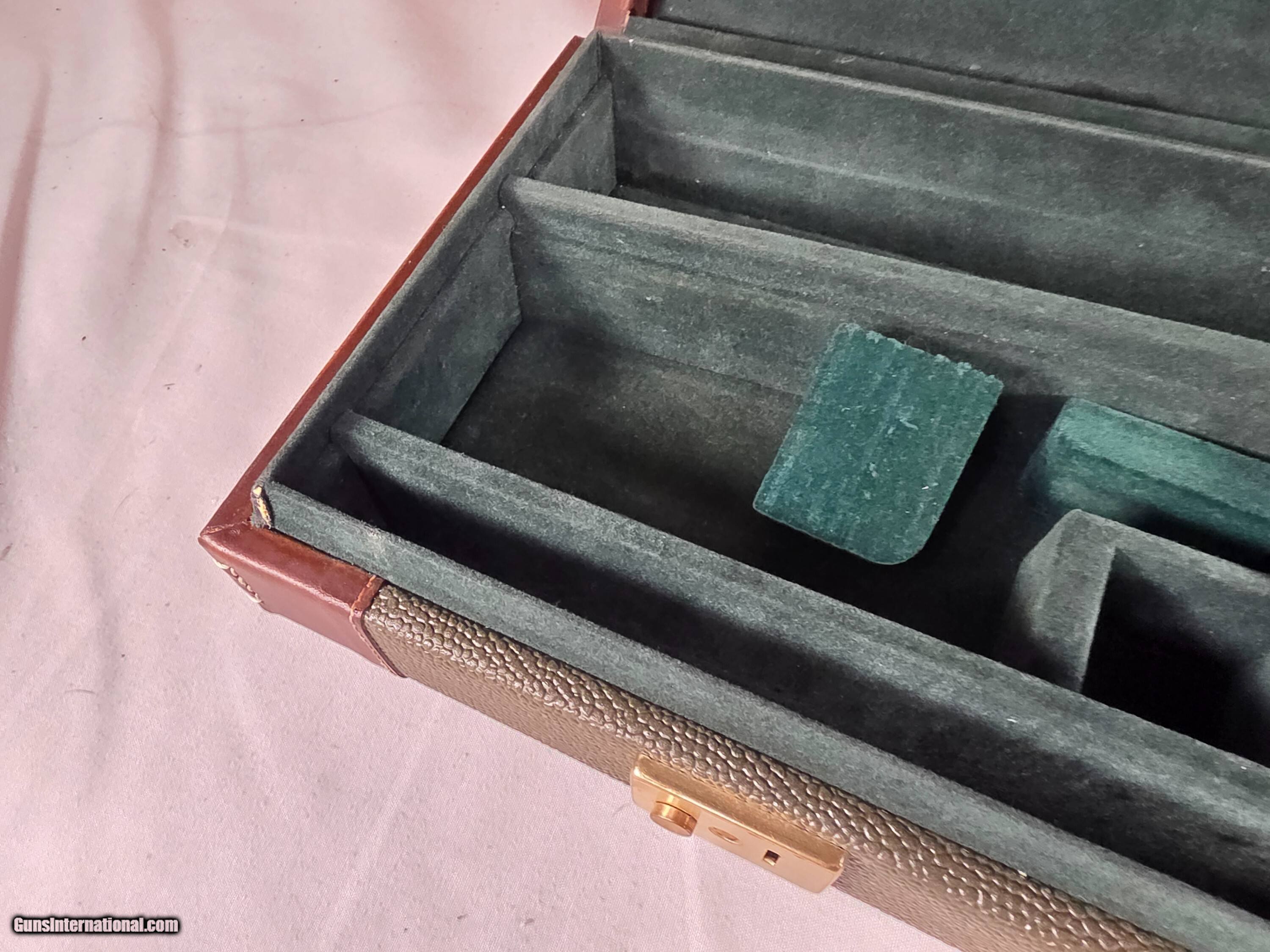 Description: 9299 Merkel Green with leather Shotgun trunk style hard case. Will fit up to a 30” Barrel, these are getting harder to find!. Has blocks. More pictures at DawsonsDoubles DOT COM Price: $500.00 Shipping: $35.00 Contact Seller |