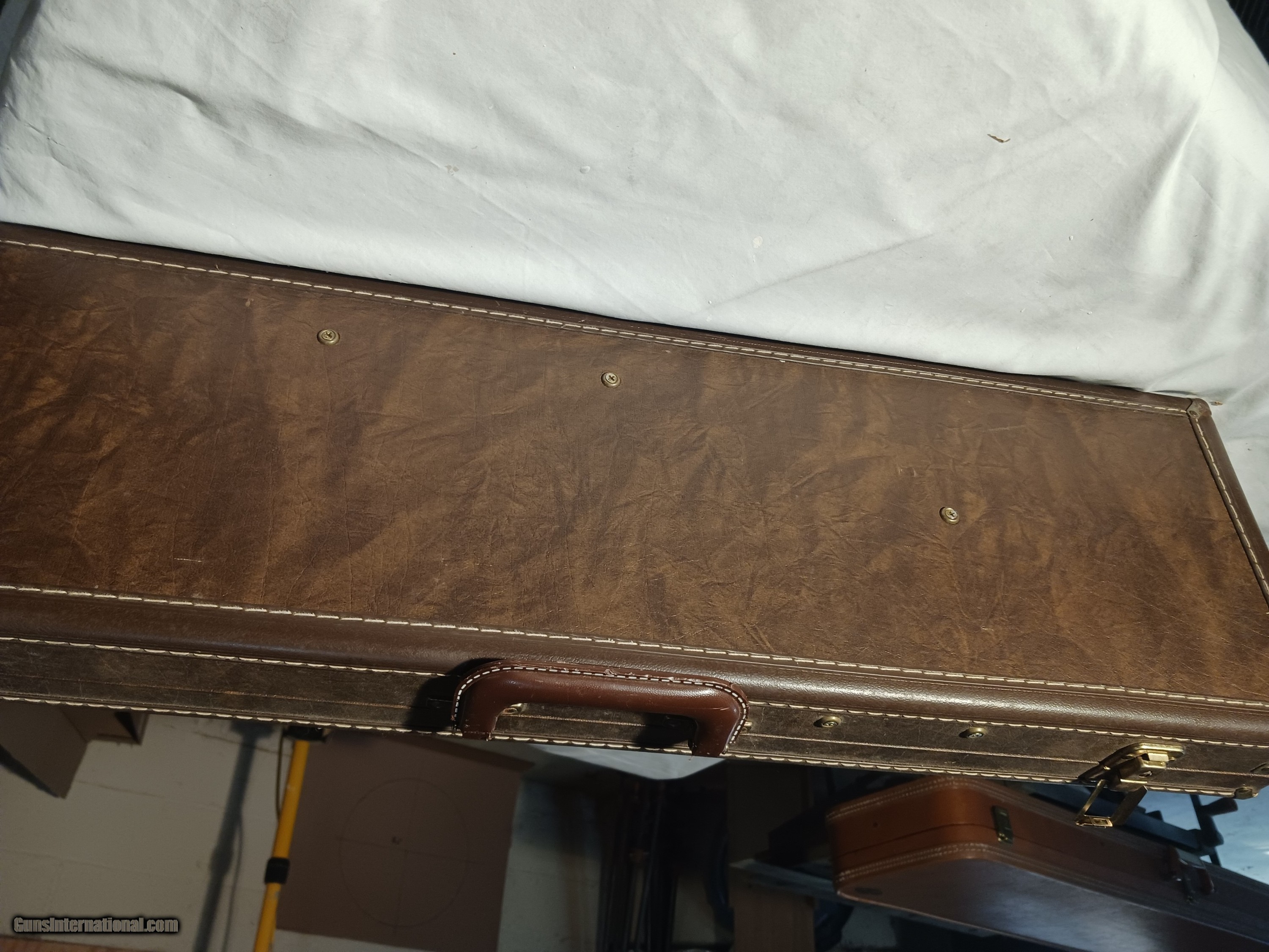 Description: Selling a better condition Browning 1215 hard case. As shown in pics. Very clean interior. Exterior brass has tarnish and scuffing. Exterior leather has some minor scuffs and scrapes. Will take up to 30" barrels. Great for your citori or even superposed. Plus shipping no sales tax. SOLD |