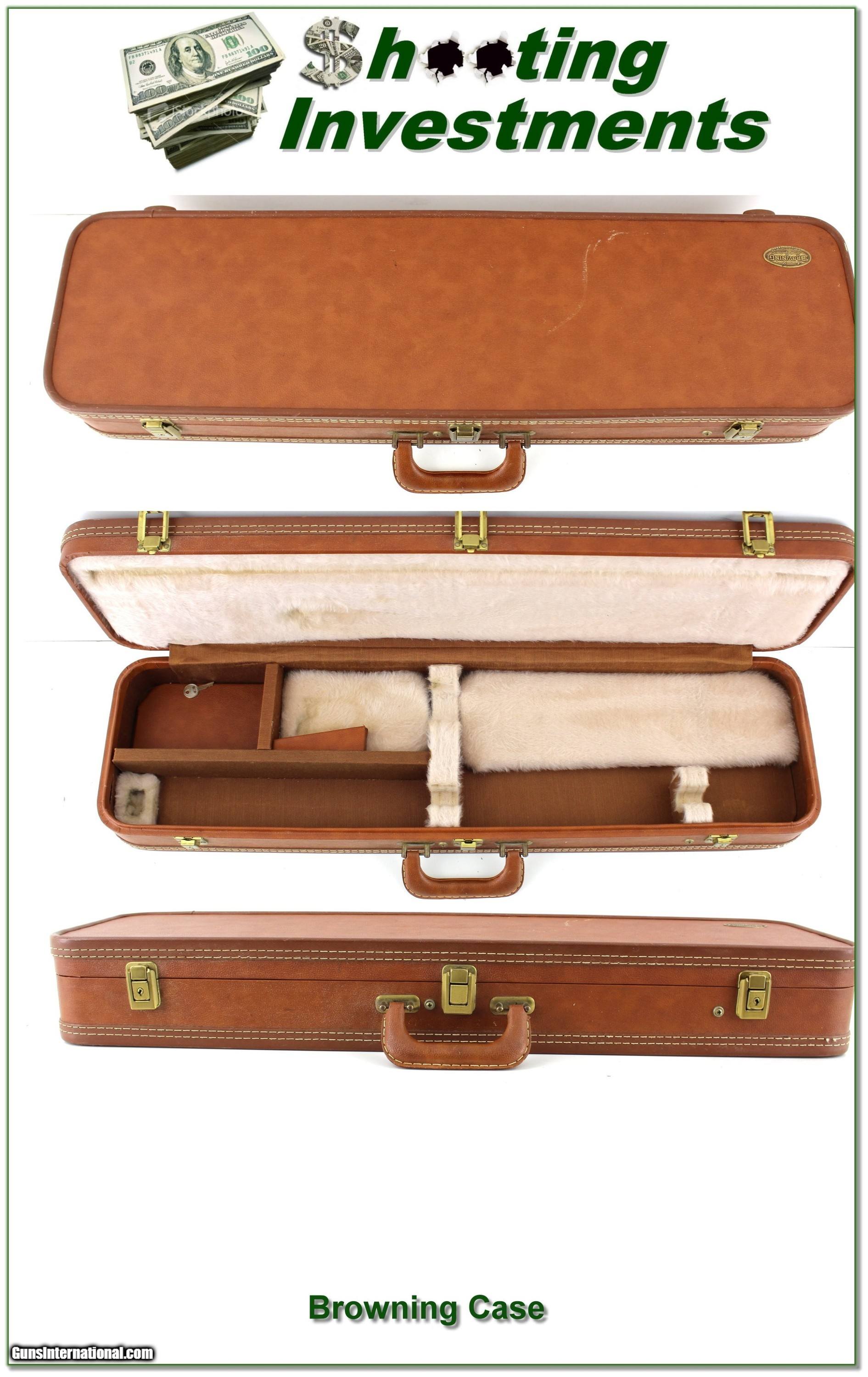 Description: This is an excellent condition and harder to find 1 barrels Superposed case. It is a Browning factory “Airways” case and accommodates up to a 30in barrel. It comes with 1 key. Most of these cases hold 2-barrel sets yet most guns have just one-barrel set. Shipping and insurance is $29. Please email me with any questions or larger pictures. (Consign your quality firearms with Shooting Investments for only 12%! Let me know if you have any you would like to sell!) 16-0507c Payment: Payment is by Money Order, Cashiers Check or Personal Check. I can now also accept MasterCard and Visa with a 3% convenience fee. PayPal can be used for some items but never firearms. Please let us know if you would like to pay via PayPal. Shipping: The shipping charge will be listed in each description. It is $39 for most guns. Some heavy guns or those insured for over $2000 will be higher. Shipments to Alaska and Hawaii are higher because air shipment is required. Most firearms are shipped on Tuesday and Thursday and usually in 5 days of receipt of payment. We package all shipments carefully and insure them. Returns: Our return policy is simple. If for any reason you are not pleased with your purchase, you may return your item for a full refund of purchase price. Ammunition cannot be returned. It is important to us that you are happy. Guns cannot be fired or dissembled before returning them and they must be returned in the same condition as received. Notification of a return must occur with-in 3 days of receipt at your dealer. Shipping, convenience and dealer fees are not refundable and are the responsibility of the buyer. Lay-a-way: If needed, we offer a 60 day lay-a-way option on most firearms. It is 1/3 now, 1/3 in 30 days and 1/3 in 60 days. Lay-a-way firearm sales are final and if not completed the first payment cannot be returned. Consigning your firearms with Shooting Investments: We will help you get top dollar for your firearms. While most local guns shops charge 20% or more, our fee is only 12% with a minimum of $75. At your local gun shop it might take months to sell. Selling on-line provides instant access to thousands of interested buyers. You won’t find any other on-line dealer willing to sell your firearms for only 12% or listing every gun on 3 separate s. Selling through an House typically costs the seller 15% and the buyer an addition 15% (so 30%) and you have to wait several months to sell and longer to receive funds. If properly priced, we will sell your firearms in a few weeks. Send us an email or give us a call and we’ll explain how easy it is for you to get top dollar. Trading: Trading for use is really just buying your gun to re-sell. If you have a gun you want to trade, please email a picture and we will let you know what we can give or it. You will always get more if we sell it for you on consignment. Help for California Buyers: We are happy to ship to California. It is the buyer’s responsibility to make sure any item you buy is legal in your state. We are also happy to help with your purchase of a firearm from someone other than us. If you see a gun you would like to buy but the seller can’t or won’t ship to California they can ship to use and we’ll then ship it to your California dealer. The cost for this service is only $30 + shipping. Let us know if we can help! SOLD |