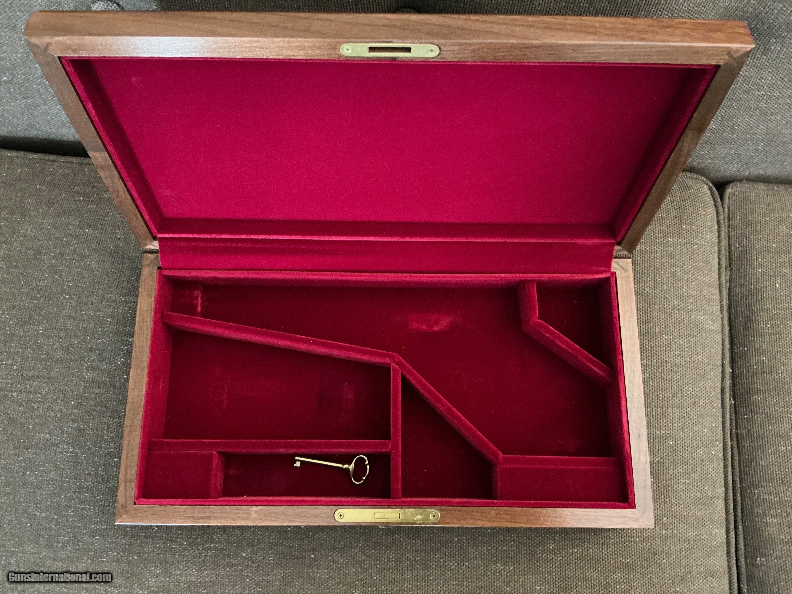 Description: Top of the line Colt custom shop case made for 1860 Army. Will also accept 51 Navy and 61 Navy. Made to house a blackpowder pistol and all accessories. Perfect, as new condition. SOLD |