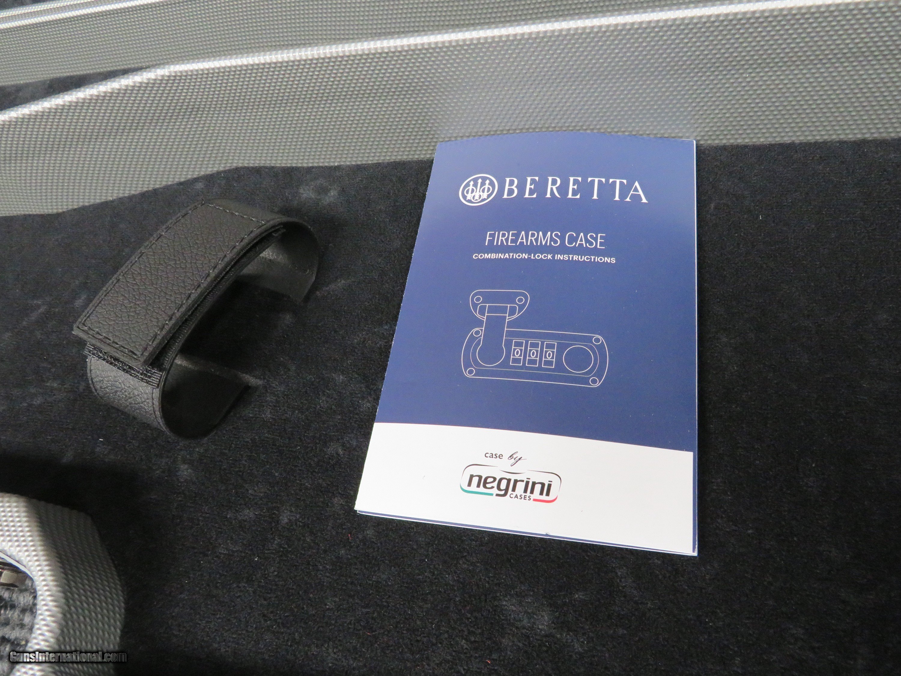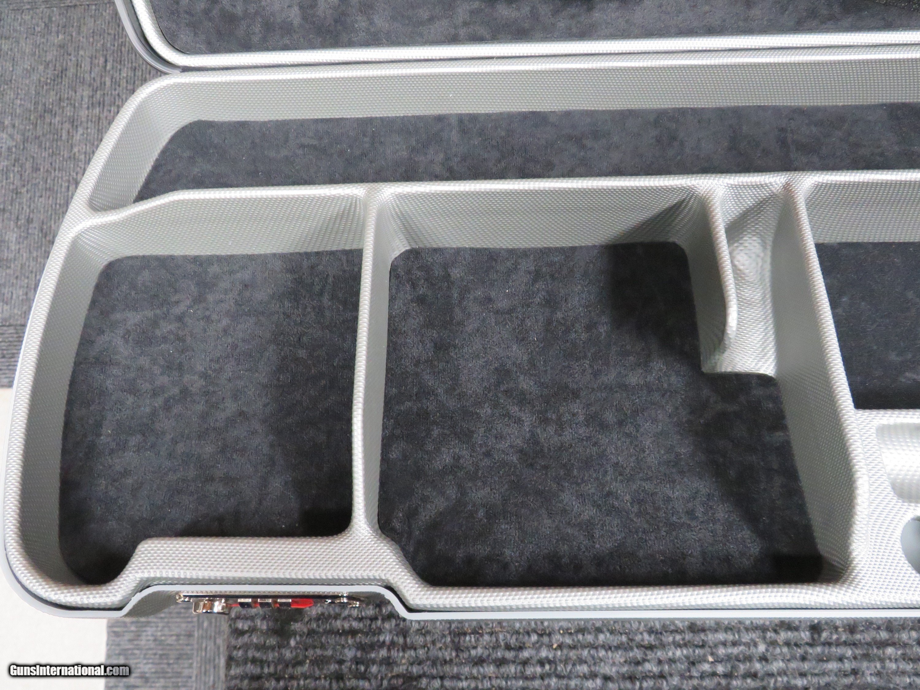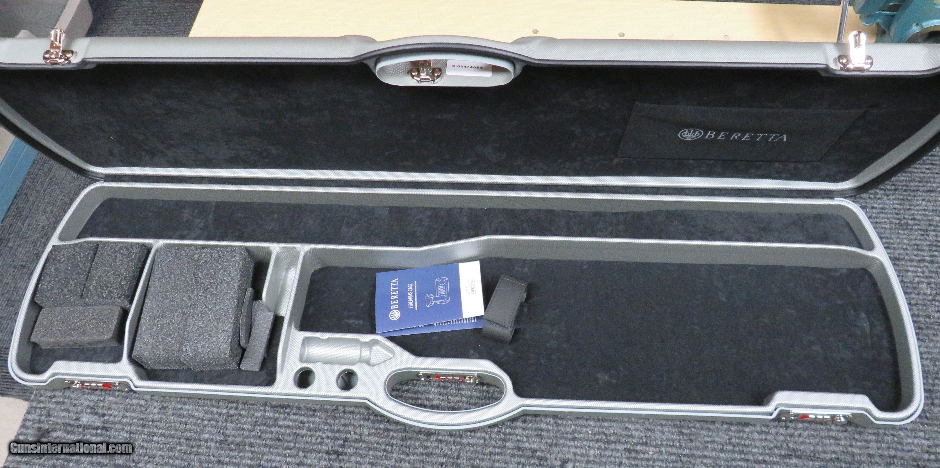 Description: Brand new in factory carton OEM Beretta 692/694/DT11 ABS Hard Case for standard rib height over/under or top single trap with barrels up to 36" long. Triple combination locks give added security. Hermetical seal all around lid of case helps keep out moisture. A nice touch is that the left side accessory compartment exactly fits a Beretta choke tube box (see my other items). This is Beretta's premium level case which comes with their 692's, 694's and DT11's, but will fit most lower profile over/unders. Soft luxurious padding inside with Velcro tie-down strap for the buttstock. Latches and hinges are metal - not plastic. Overall, this case is very nice quality and has good, robust construction. Condition is brand new in original factory carton. Made in Italy by renowned case maker Negrini. Your shotgun deserves more than a mere waffle foam case. Why not treat your prized over/under or top single to a beautiful luxury case that not only looks great, but gives far better protection and does it at a great price? If you use the "ask seller" and give me your exact model gun with barrel length, height of barrel from bottom of barrel to top of rib and gauge, I will verify if it fits in this case. I'll guarantee your satisfaction! Shipped via USPS Parcel Select Ground or FedEx Ground Home Delivery. SOLD |