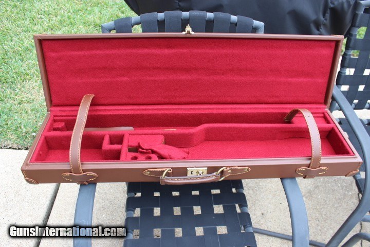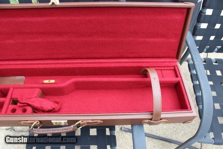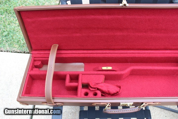 Description: Emmebi of Italy. All leather gun case. For a side by side 12 ga with barrels to 32". This is a brown all leather case from a well known maker. The case has a separate compartment for snap caps, oil bottle and an accessory compartment. The case has leather corners and leather case strap. Center keyed lock with the key. Inside is lined with elegant red felt. Emmebi has made cases for all the Italian makers at one time. Do not confuse the quality of this case with other cheaper cases from China and Pakistan . We were the importer of Emmebi cases for many years. This is a new case and way below current replacement cost. Only $350. John Boyd of Quality Arms, Houston, TX. 713-818-2971 SOLD Shotgun Gauge: 12 Gauge |