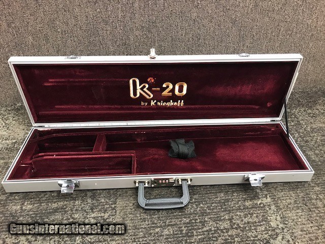 Description: This is a listing for a pre owned Krieghoff factory K20 "One Barrel" Americase. can be used for any small frame shotgun. Fits 30" barrels with extended chokes- compartments for accessories - has normal minor scratches but remains in excellent condition Note: Price excludes shipping, please call for a total price SOLD |