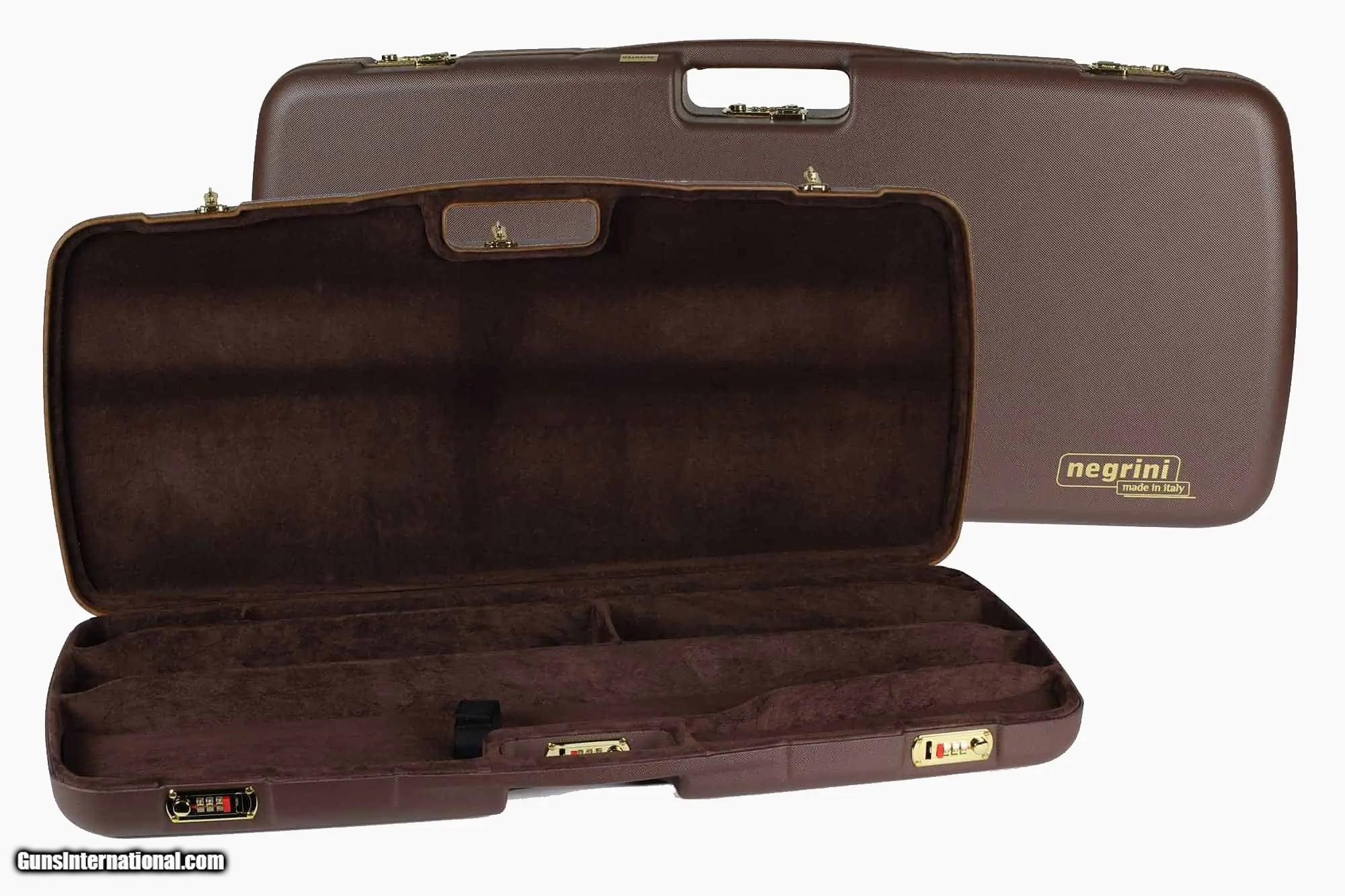 Description: Luxury Gun Case Luggage The Negrini MOD.9-EXPR Series rifle hard case is perfect for any takedown rifle with two barrels and 2 scopes. The leather rifle cases max barrel length is 26. It features a padded luxury interior with separate compartments for your stock, receiver, forend barrels and scopes. This compact Italian-designed takedown rifle case is the perfect solution for any lightweight air travel and is great for car, club, and home. LXX Leather trim on the top side of the case 100% Italian leather About Negrini Gun Cases Negrini gun cases are designed with an ultra-strong double wall ABS construction. Which consists of a thick thermoformed ABS outer case welded to a rigid thermoformed inner case. Negrini gun cases are fully cushioned and lined with plush velvet or microfiber. Negrini gun cases patented double wall construction assures maximum shock absorption without breaking. Each gun cases are fitted with hardened steel combination locks and hinges. The locks are recessed to prevent gun case damage on conveyor belts. Negrini gun case interiors are designed with separate compartments for stock and receiver, barrel and forend as well as accessories. All Negrini gun case materials used are certified to not outgas or corrode firearms. Many colors are available. Limited lifetime warranty. International air travel certified Hardened steel combination Locks for security 100% Made in Italy Lightweight air travel without all the extra baggage fees Limited Lifetime Warranty Manufacturer: Negrini Model: MOD.9LXX-EXP/4827 Condition: New Barrel Type: Single Shot Rifle, T Weight: 10.8 lbs Price: $350.00 Contact Seller |