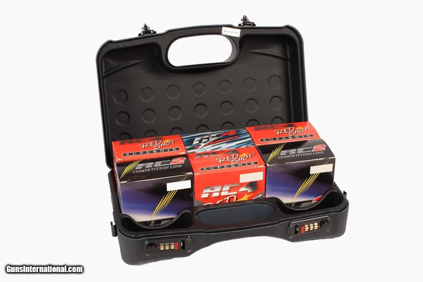 Description: 150 ct Shotshell Cases for Air Travel The Negrini 150 count shotgun shell box is great for taking multiple rounds to shooting events. The patented double wall ABS technology in the shotshell case protects the shotgun shells from mishandling of airline travel. The 21150-TRAC Series shotshell case features hard wall separated compartments with enough room for (6x) 25 count shotgun shell boxes. Plus a removable nylon webbing carry strap. This compact Italian designed TSA approved ammunition case is the perfect solution for any lightweight air travel and is great for car, club and home. 150 count shotshells Two Steel Combination Lock Integrated carry handle Removable nylon webbing strap Durable ABS construction About Negrini Gun Cases Negrini gun cases are designed with a ultra strong double wall ABS construction. Which consists of a thick thermoformed ABS outer case welded to a rigid thermoformed inner case. Negrini gun cases are fully cushioned and lined with a plush velvet or microfiber. Negrini gun cases patented double wall construction assures maximum shock absorption without breaking. Each gun cases is fitted with hardened steel combination locks and hinges. The locks are recessed to to prevent gun case damage on conveyor belts. Negrini gun case interiors are designed with separate compartments for stock and receiver, barrel and forend as well as accessories. All Negrini gun case materials used are certified to not out gas or corrode firearms. Many colors available. Limited lifetime warranty. International air travel certified Hardened steel combination Locks for security 100% Made in Italy Lightweight air travel without all the extra baggage fees Limited Lifetime Warranty Manufacturer: Negrini Model: 21150/4867-TRAC Condition: New Weight: 1.5 lbs Price: $165.00 Contact Seller |