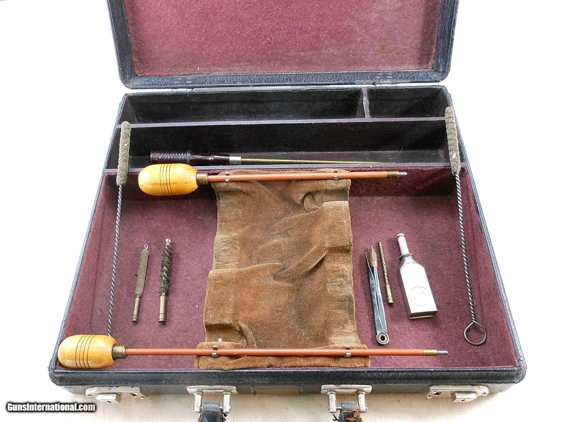 Description: This is an original Hartmann pistol case that is N.R.A. sponsored and made excusively for them. The registered serial number of this case is 27. The case comes with all of the cleaning accessories for a 38 Special and a 22 rim fire pistol. The compartments are set up for carrying two revolvers. The compartments will work for the Colts Or Smith & Wesson Revolvers with six inch barrels. These Sponsored cases were from the 1920's. The case is a very interesting collectable item for the N.R.A. collector as well as the early target pistol collector. Search for hlvfineguns on google for more details. Colt Officers Model Target For Illustration Only. Pistol Not For Sale. Bee (8) F. No. 296 - 330 -16 SOLD |