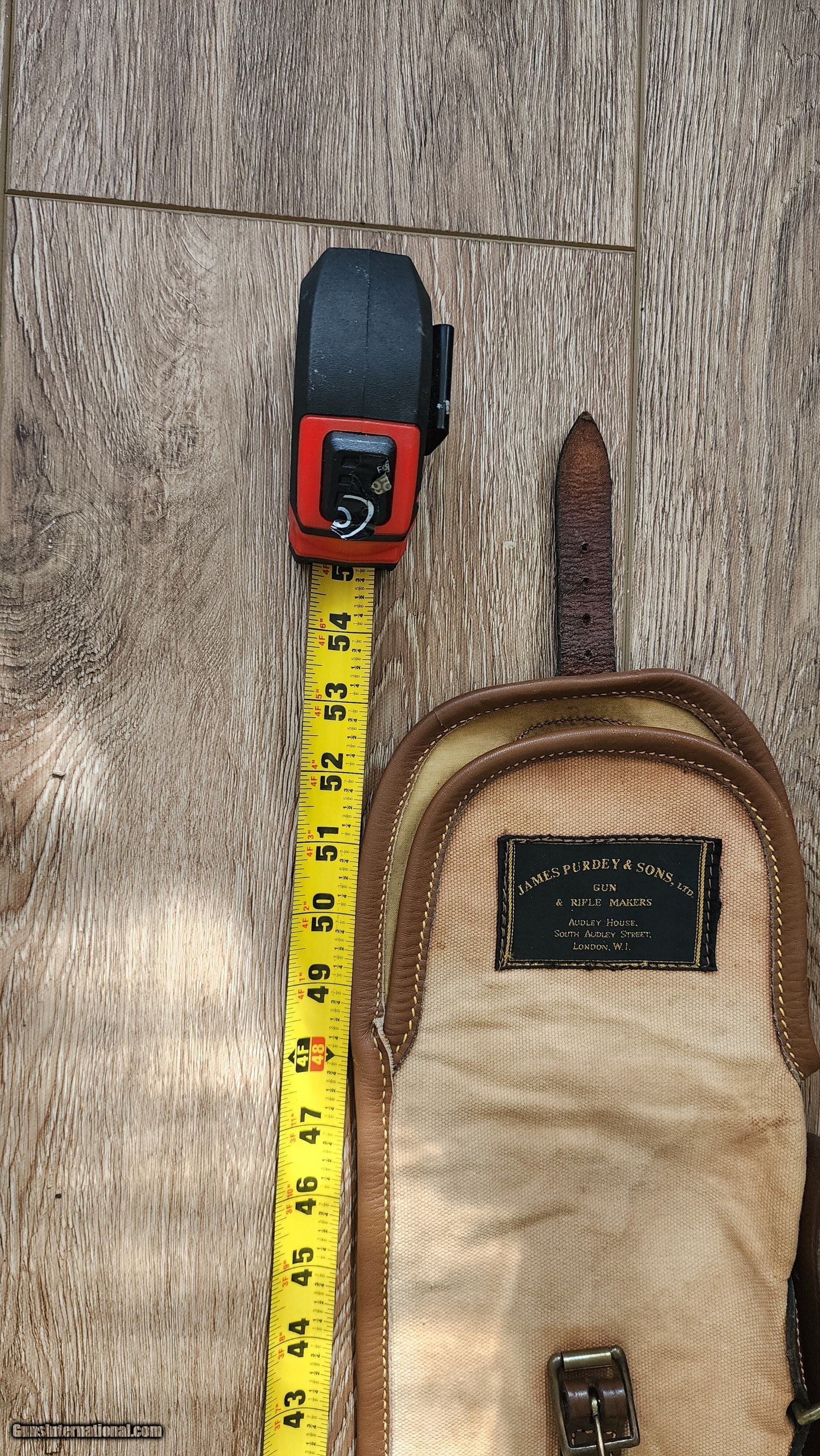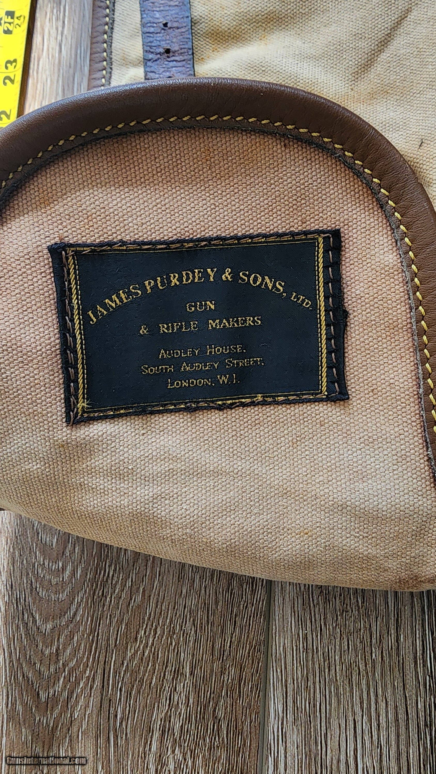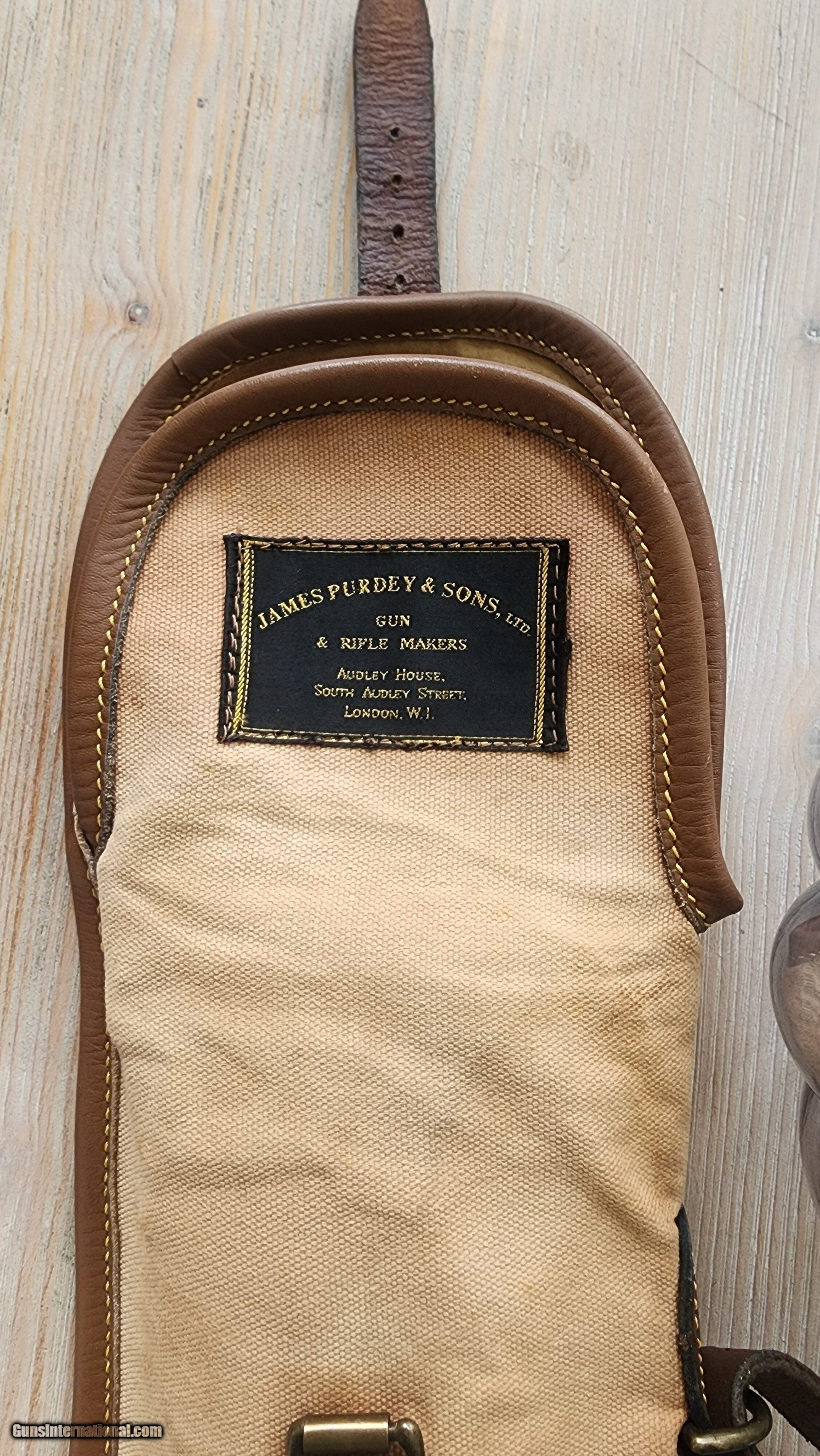 Description: Purdey Canvas and leather gun slip Some light staing no rips or tears. Solid pliable leather, light weight, with sholder strap for field use, witll fit a 30 inch gun, may fit a 32 inch but i didnt try. Not sure when it was made, but definitely Vintage! I have never seen another. If interested or have questions, please text, call or email. I keep forgeting that there is messages on this sight and you have to log in just to check. Purdey, holland and holland, westley richards, english shotgun, james dixon, wc scott, william evans, boxlock, sidelock, lc smith, parker, ithaca, Price: $125.00 Contact Seller |