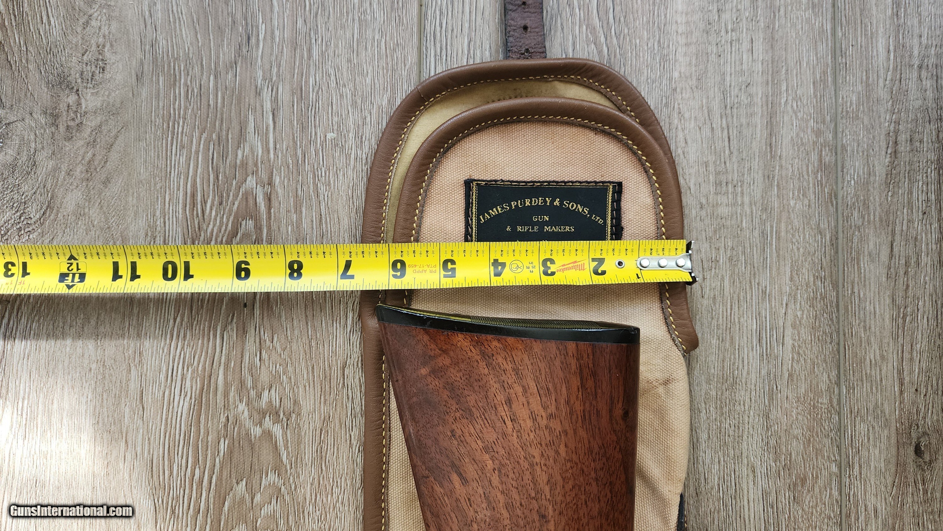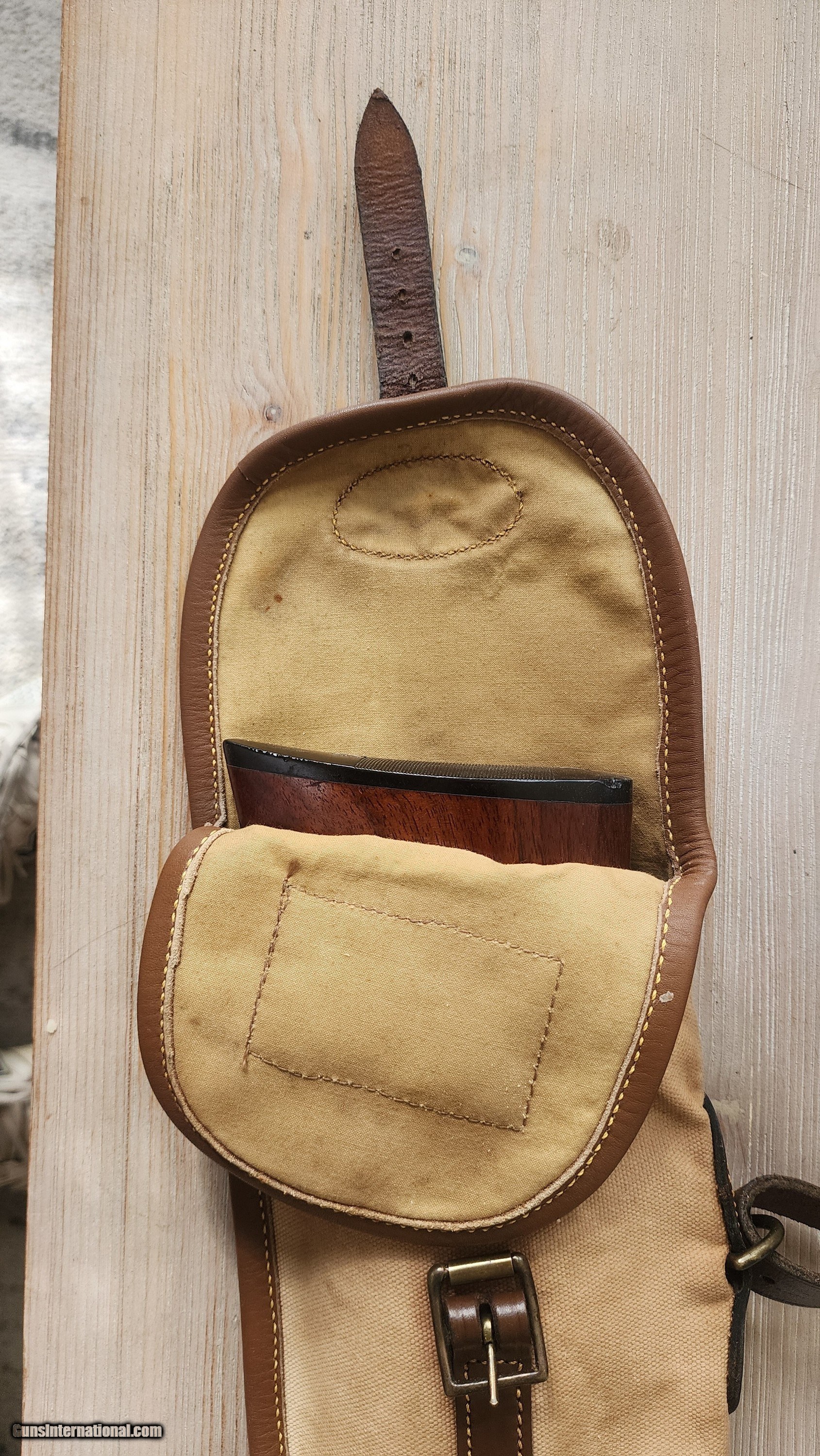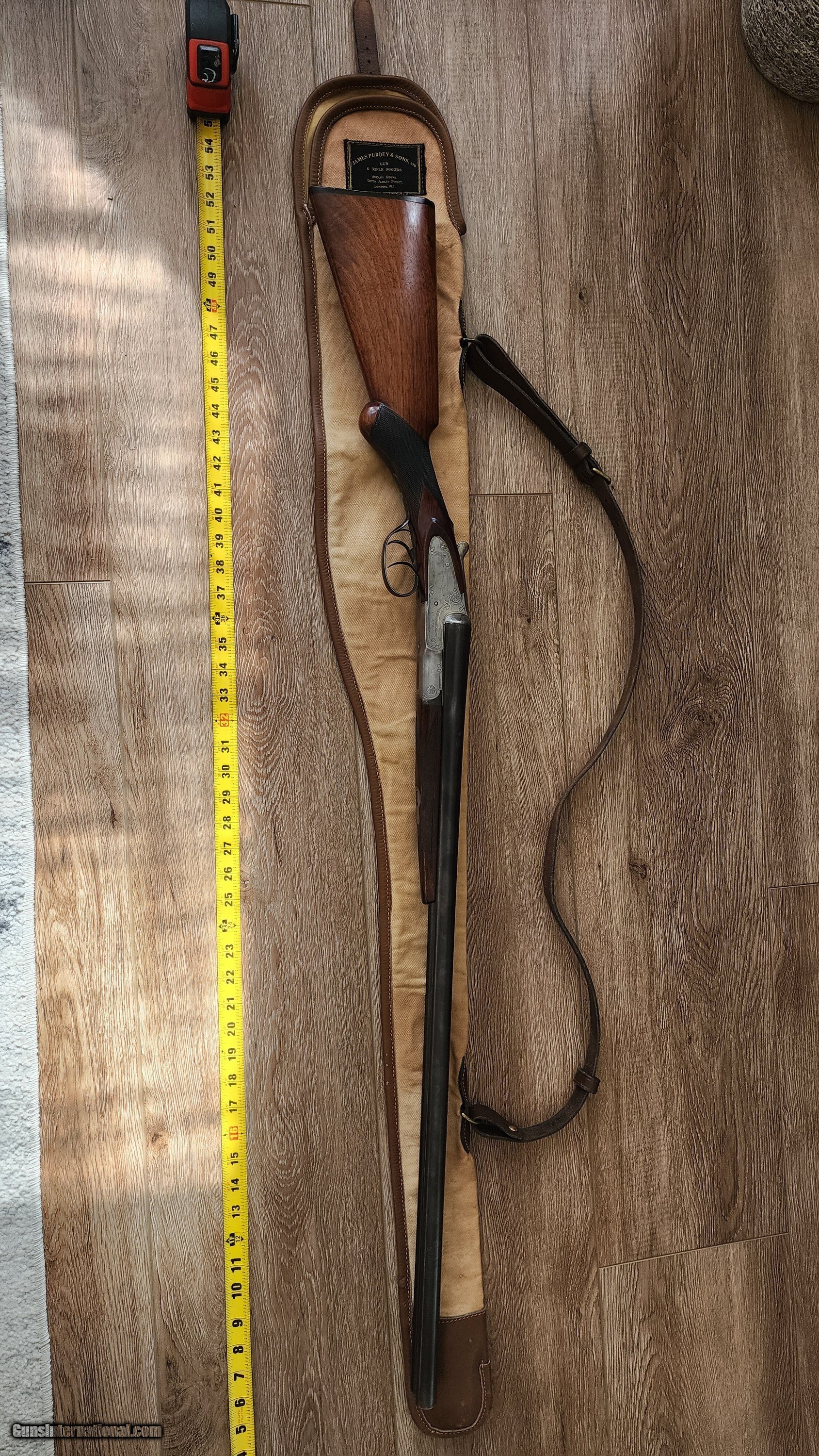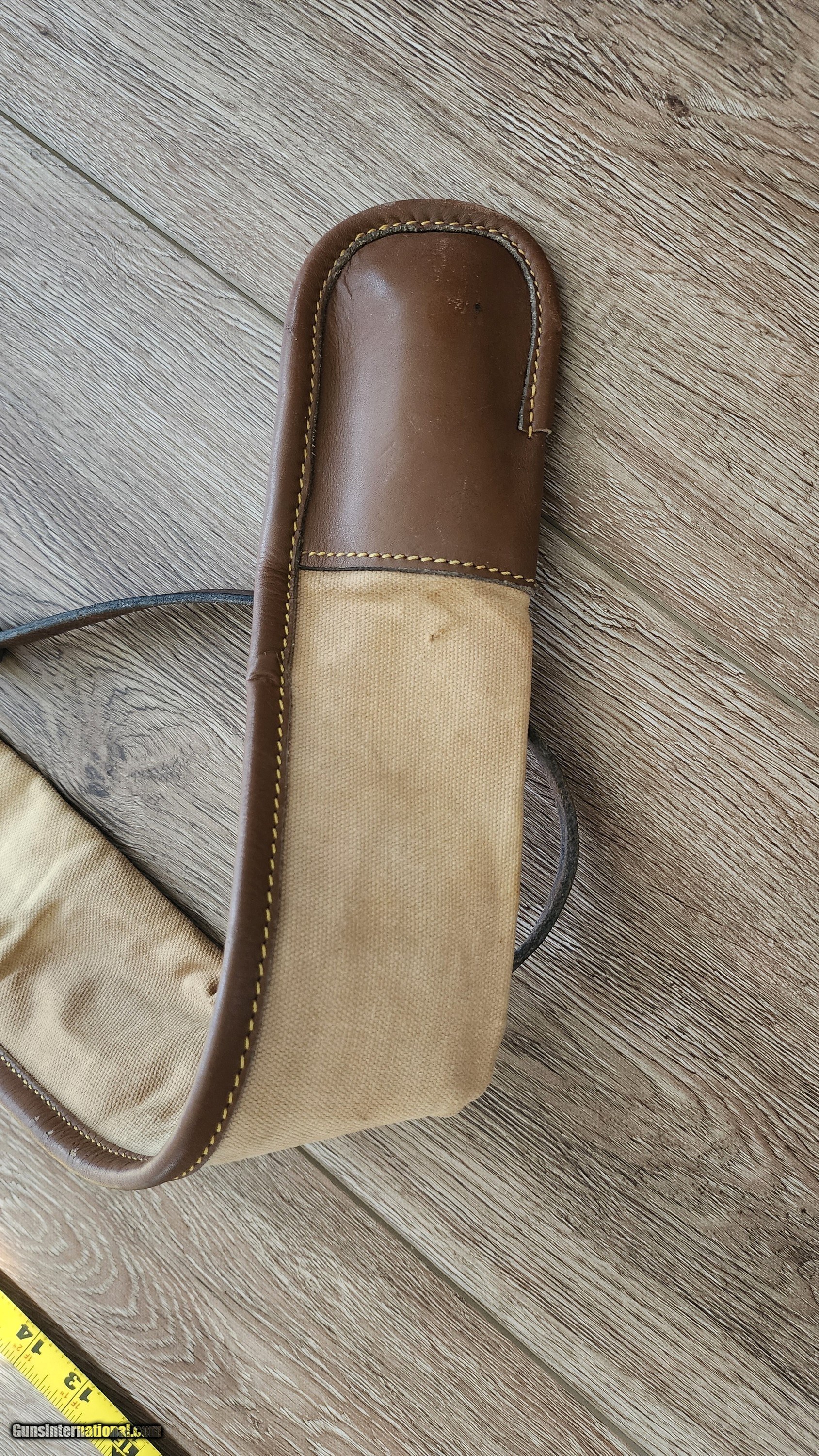 Description: Purdey Canvas and leather gun slip Some light staing no rips or tears. Solid pliable leather, light weight, with sholder strap for field use, witll fit a 30 inch gun, may fit a 32 inch but i didnt try. Not sure when it was made, but definitely Vintage! I have never seen another. If interested or have questions, please text, call or email. I keep forgeting that there is messages on this sight and you have to log in just to check. Purdey, holland and holland, westley richards, english shotgun, james dixon, wc scott, william evans, boxlock, sidelock, lc smith, parker, ithaca, Price: $125.00 Contact Seller |