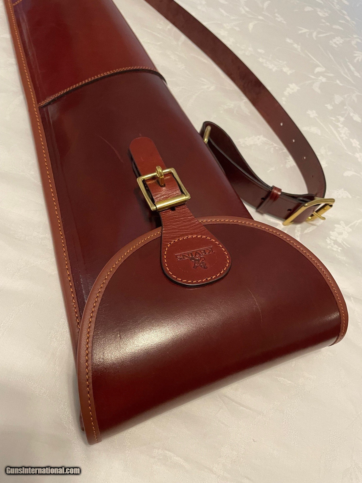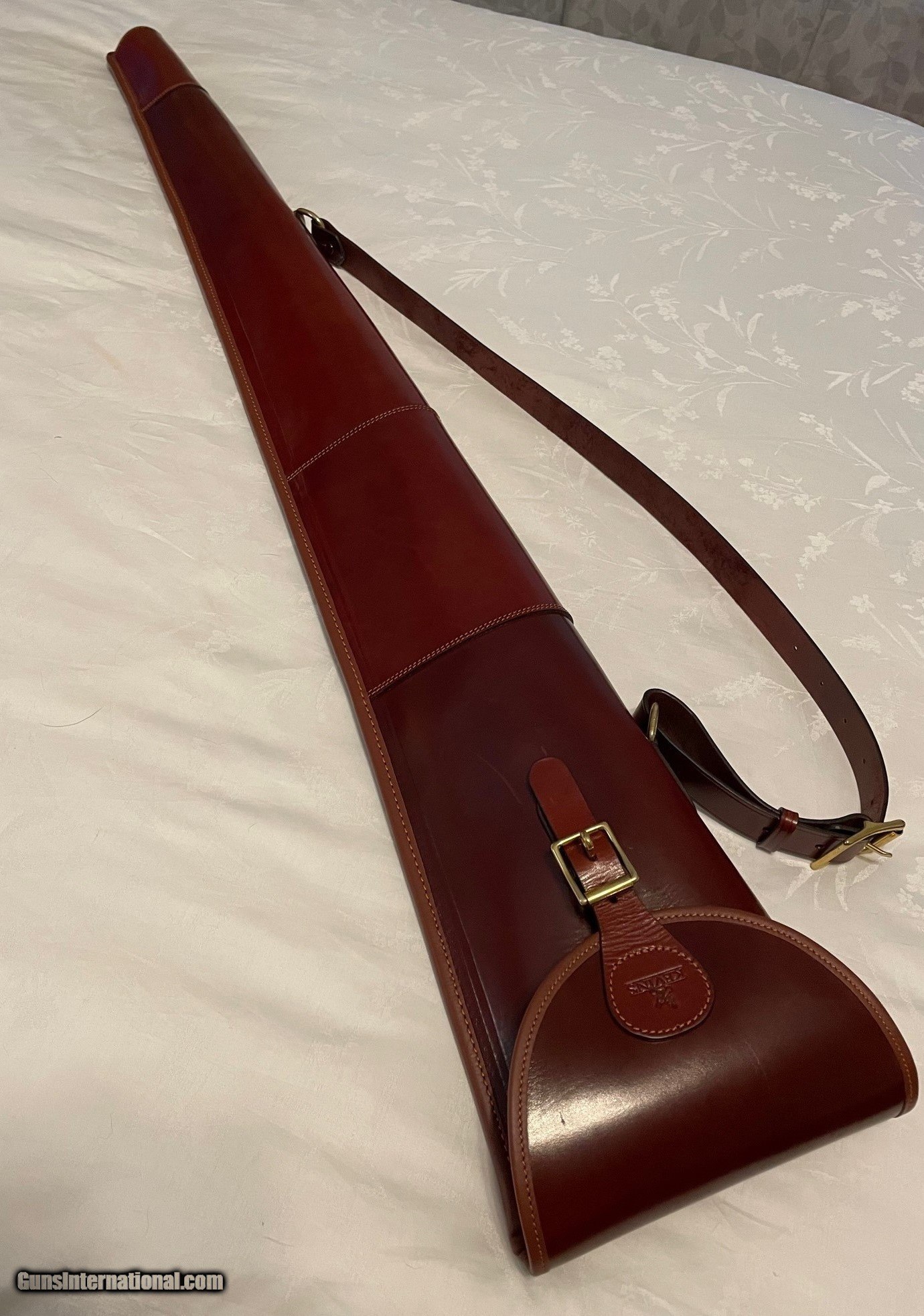 Description: (Item is now Sold) Offering a Rey Pavon leather gun slip. This case measures 50" in length and fits a gun up to 48" in length which includes most guns with up to 30" barrels (O&U or SxS). Semi-auto or pump up to 28" barrel. These cases are made in Spain and imported, sold by Kevins. They currently sell for $489 so this one is almost half off that price. I've owned this case a short while and it remains unused, as new. Please add $20 for shipping. SOLD |