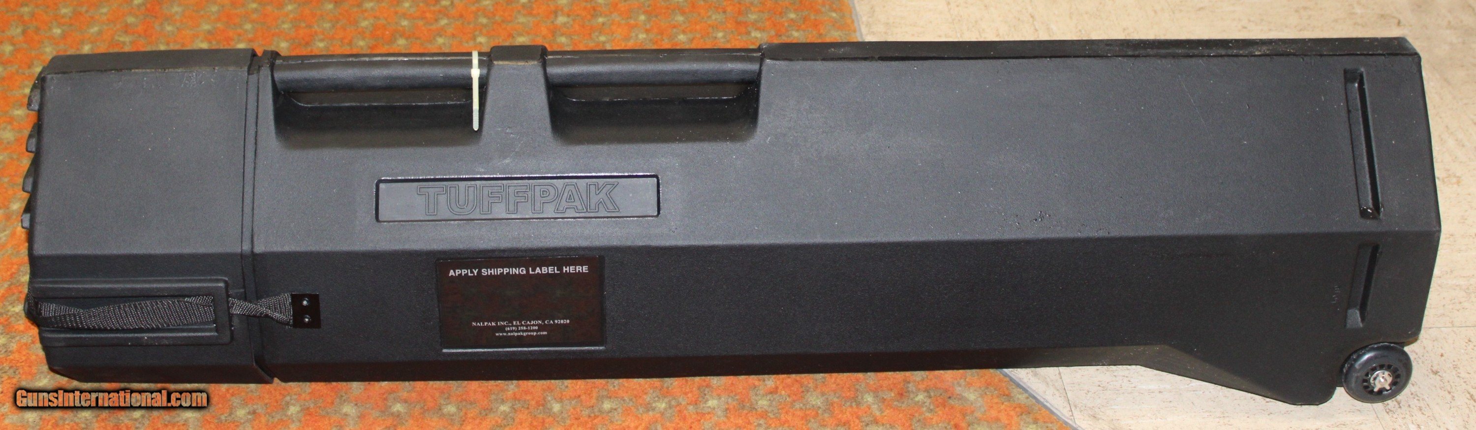Description: NEW, NEVER USED. NO ORIGINAL BOX. The Original Tuffpak™ will carry up to three scoped rifles (or as many as five shotguns) up to 50" in overall length in ultimate security. It's well balanced and rolls effortlessly behind you no matter how much you've put inside, leaving your other hand free. We recommed for your protection to put your guns in their normal soft cases and slide them into your Tuffpak. Your firearms are safe and secure, and you'll have your soft cases to protect your guns when you arrive without taking up extra room in your luggage. features: